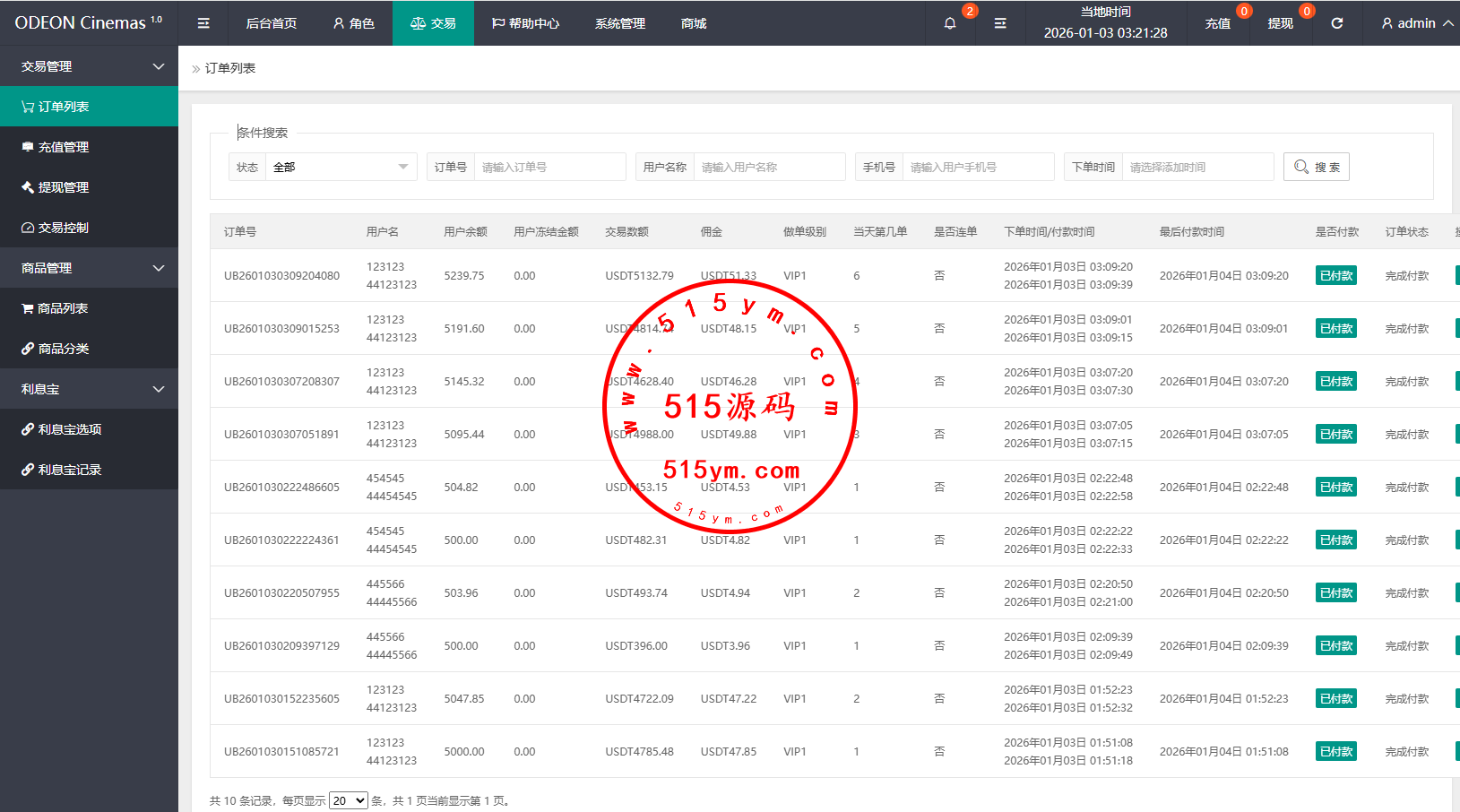 新UI影视刷单系统,前端多语言带教程系统功能:重置订单,超级打针,派单,提现地址审核,登陆日志,在线状态等功能