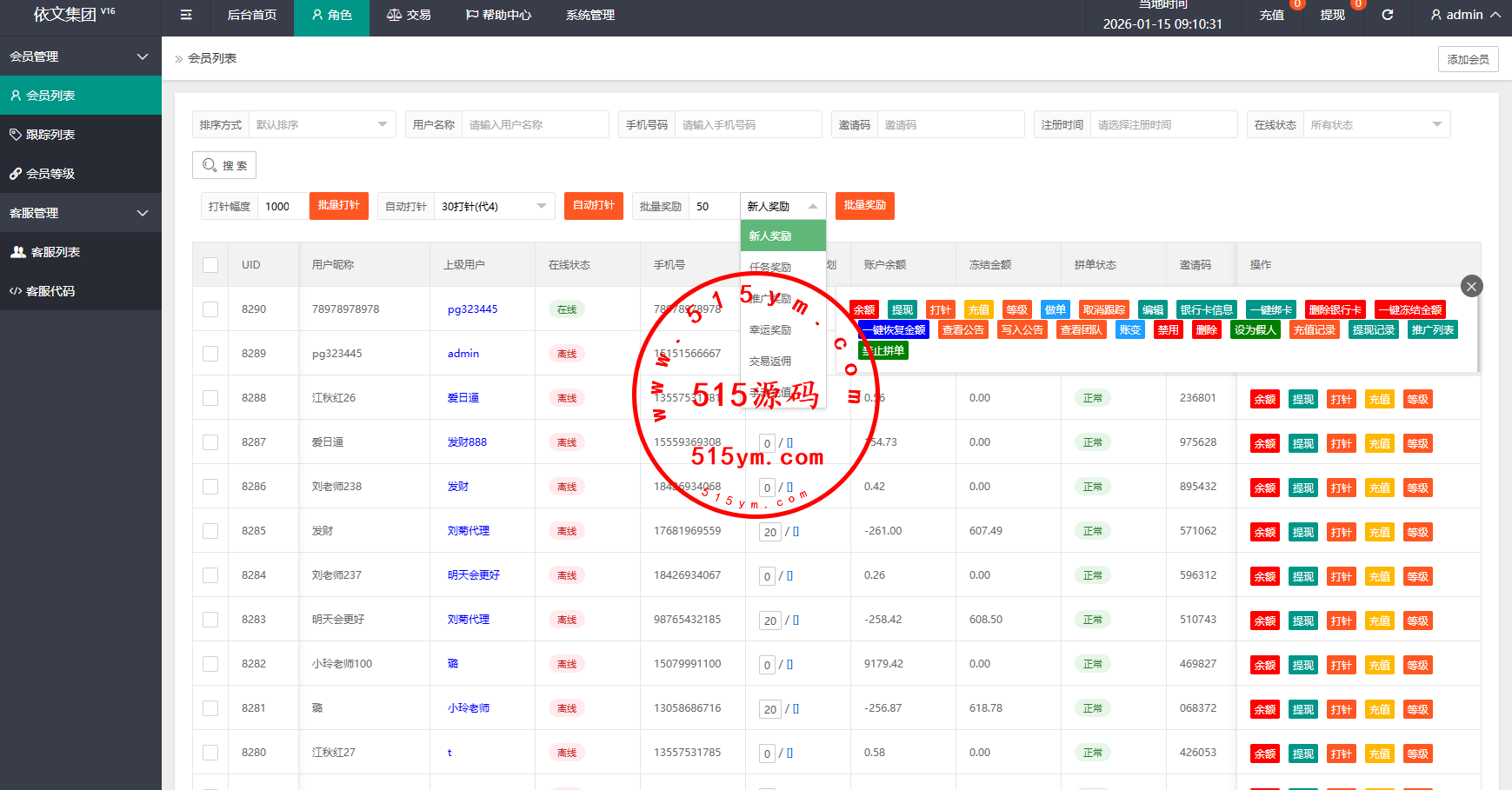 新版UI抢单刷单系统,前端可二开多语言批量打针,批量奖励,信誉分,会员跟踪,一键冻结,一键绑卡等功能