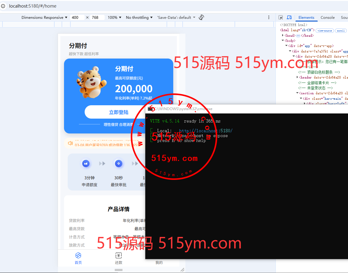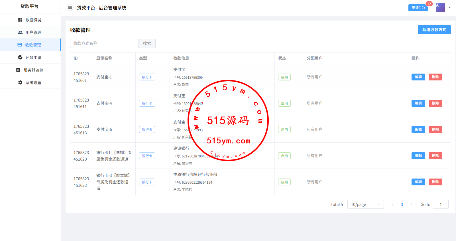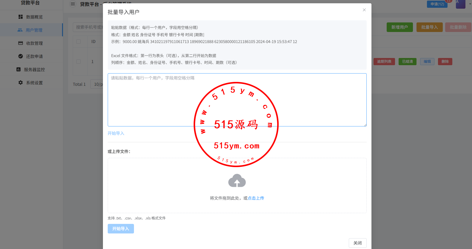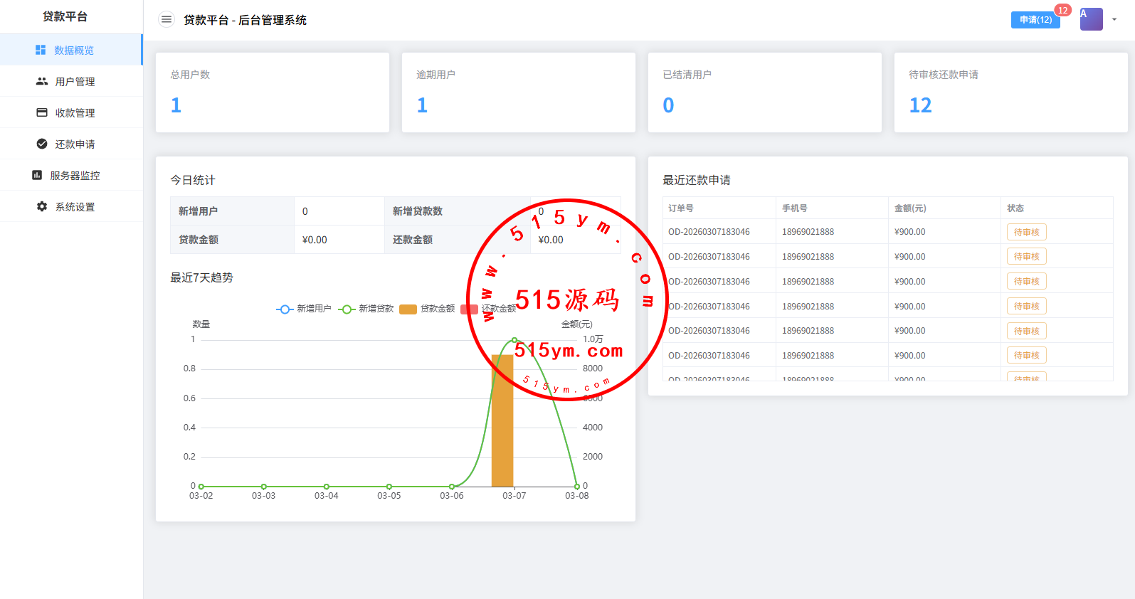 系统前端后台VUE开发,服务端JAVA开发全开源带源码后台可一键填充用户数据生成贷款逾期前端用户手机登陆,就能查看自己的欠款信息