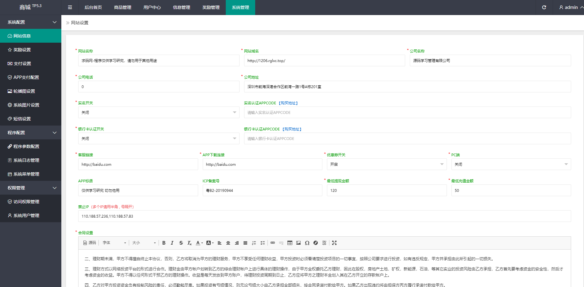 前端使用Vue开发,已经成功上线测试多次,是一款可以直接上线运营的项目