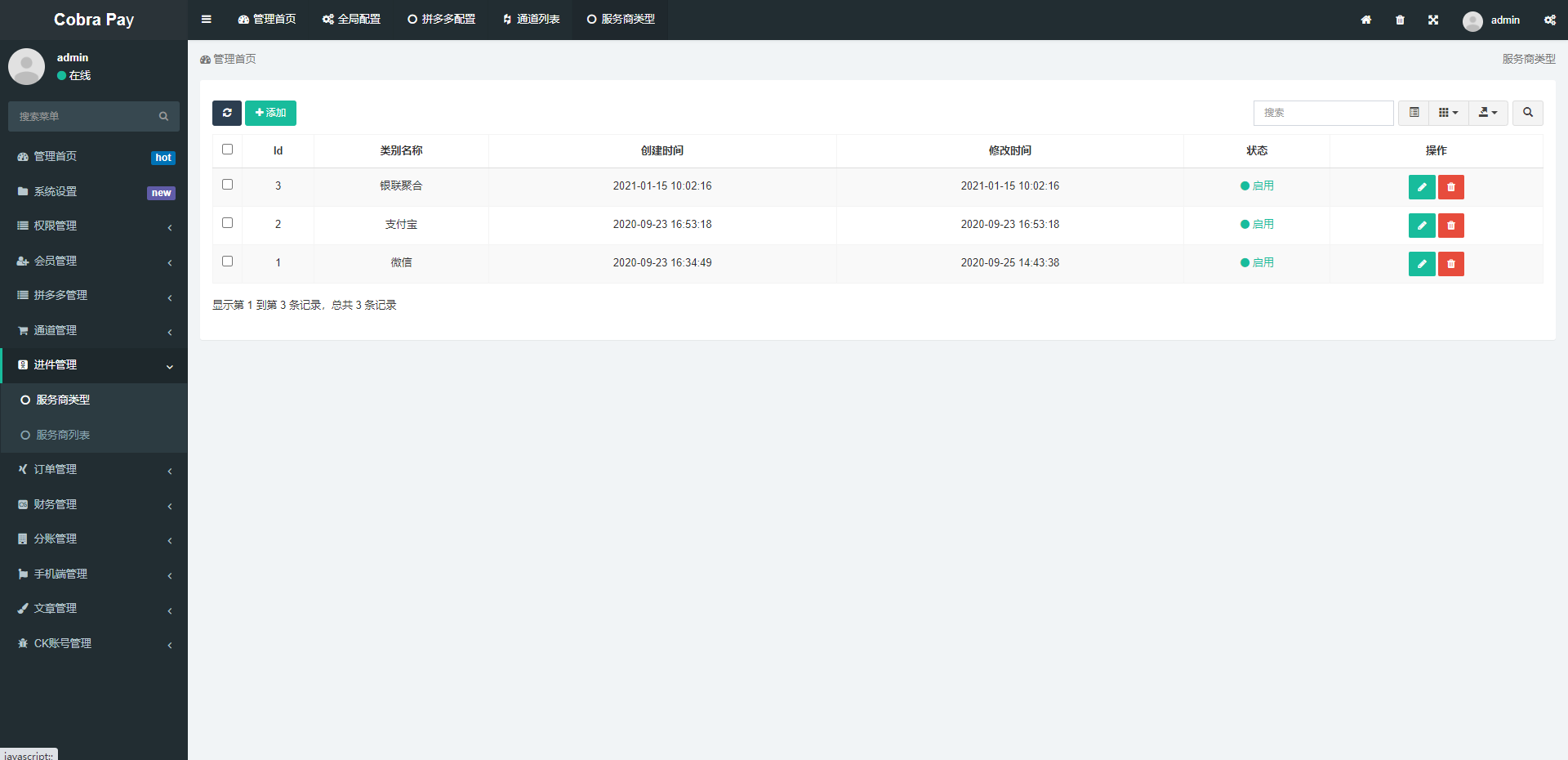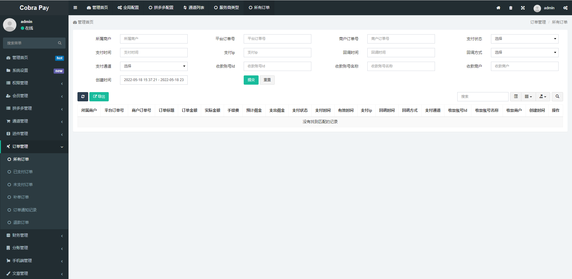 系统几乎附带了市面上的所有接口类型,系统方便二开其他接口