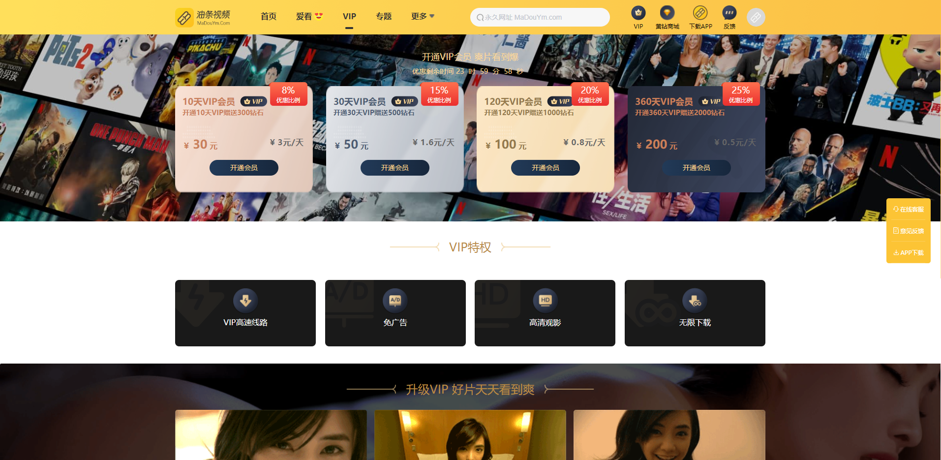 5. 可直接指定一个分类下视频为免费专区,其他分类下则全部为VIP视频