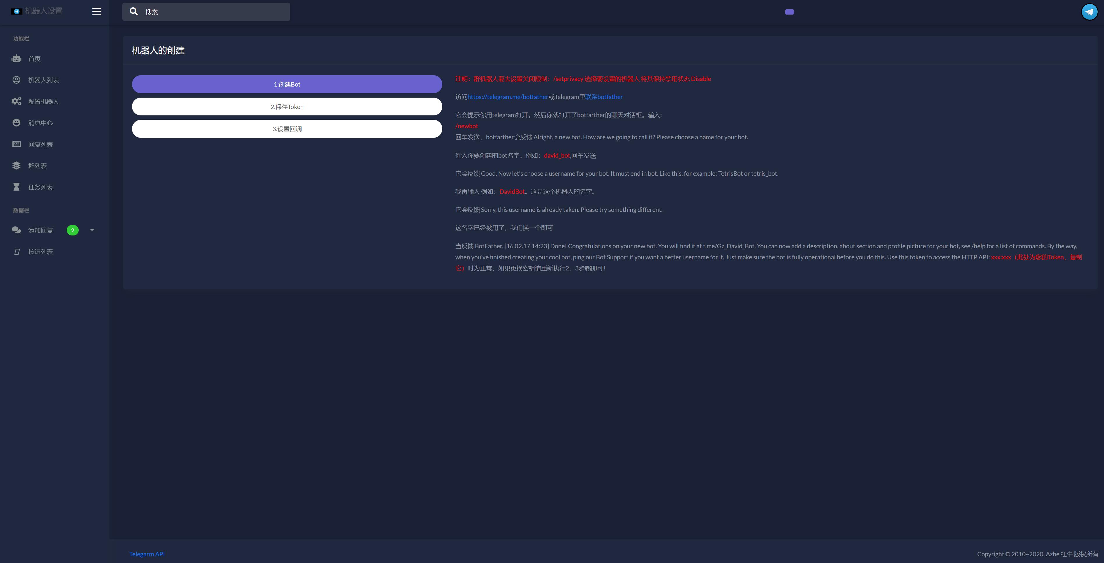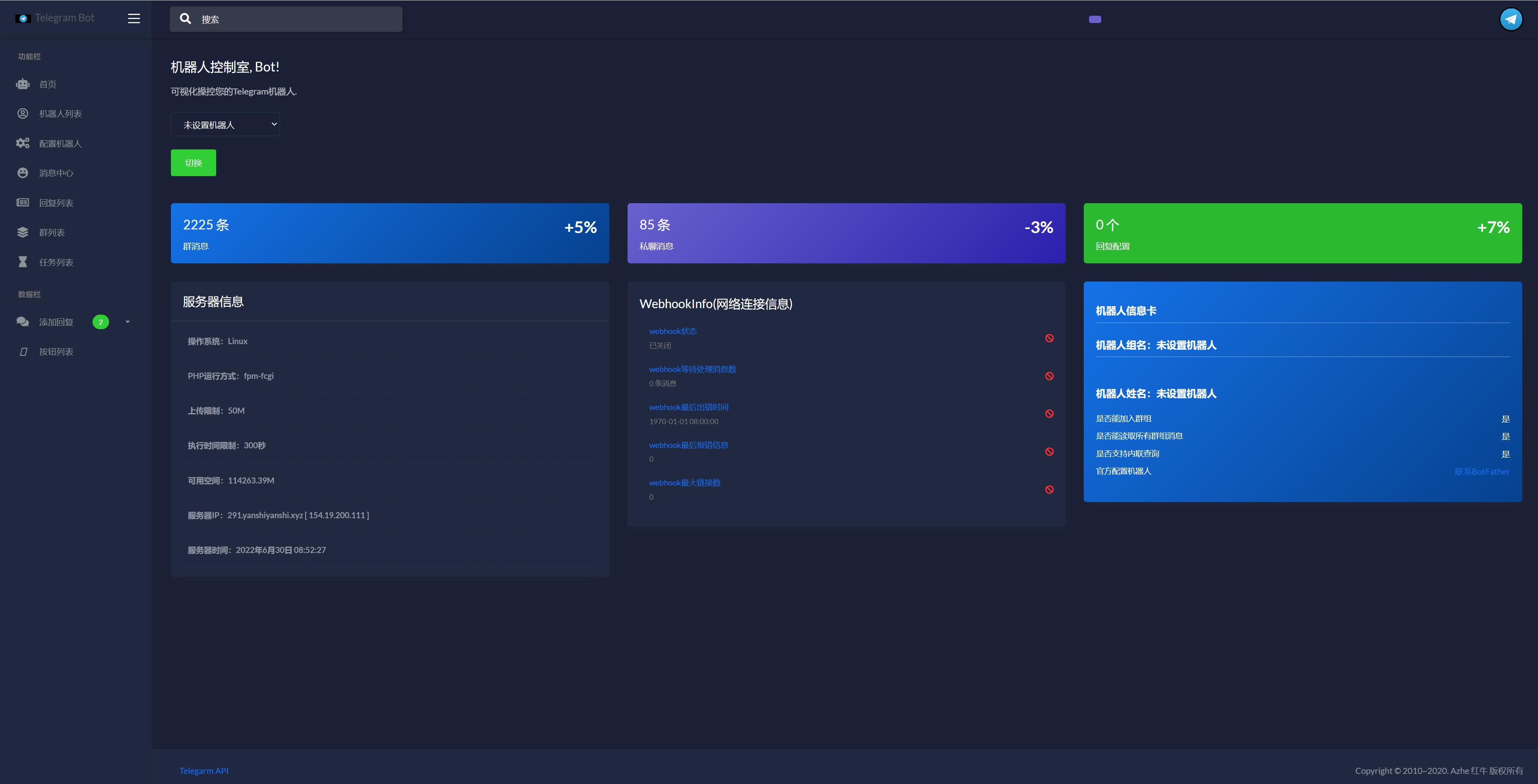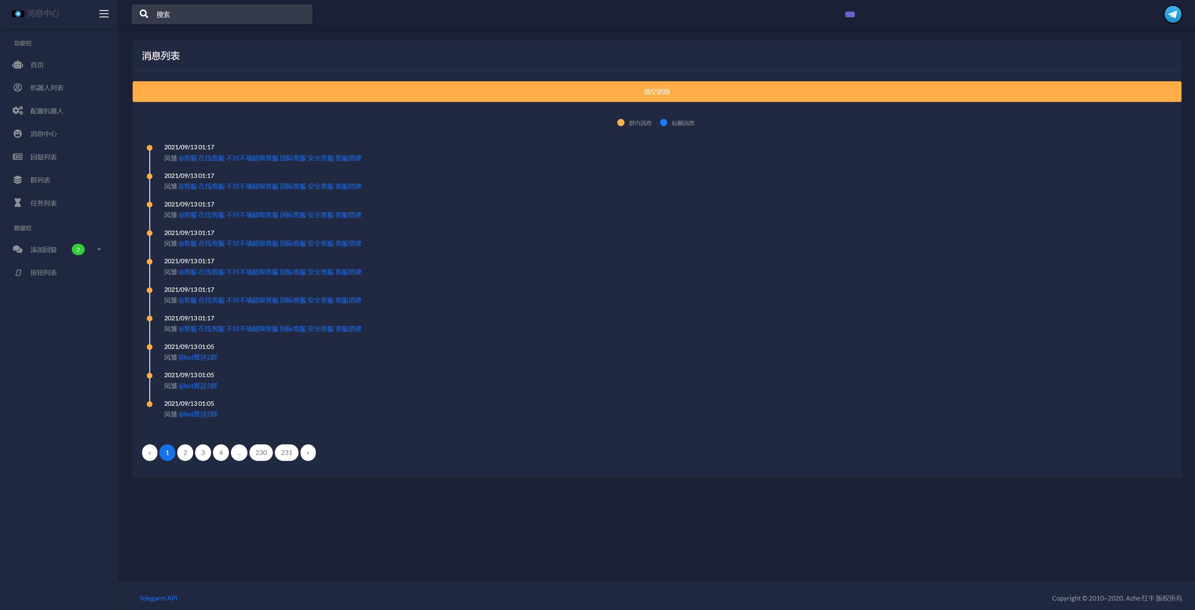 系统支持多个添加机器人、支持关键词回复、支持设置按钮回复、支持个人、群、频道等的消息处理,另外支持消息定时推送。