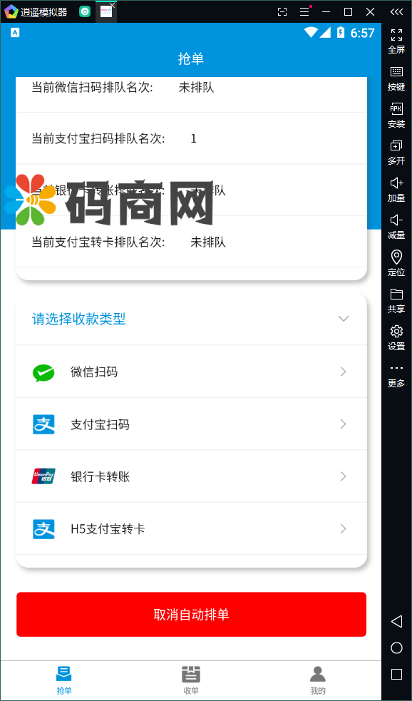 系统支持微信支付宝收款码支付、银行卡、支付宝转卡、支付宝H5
