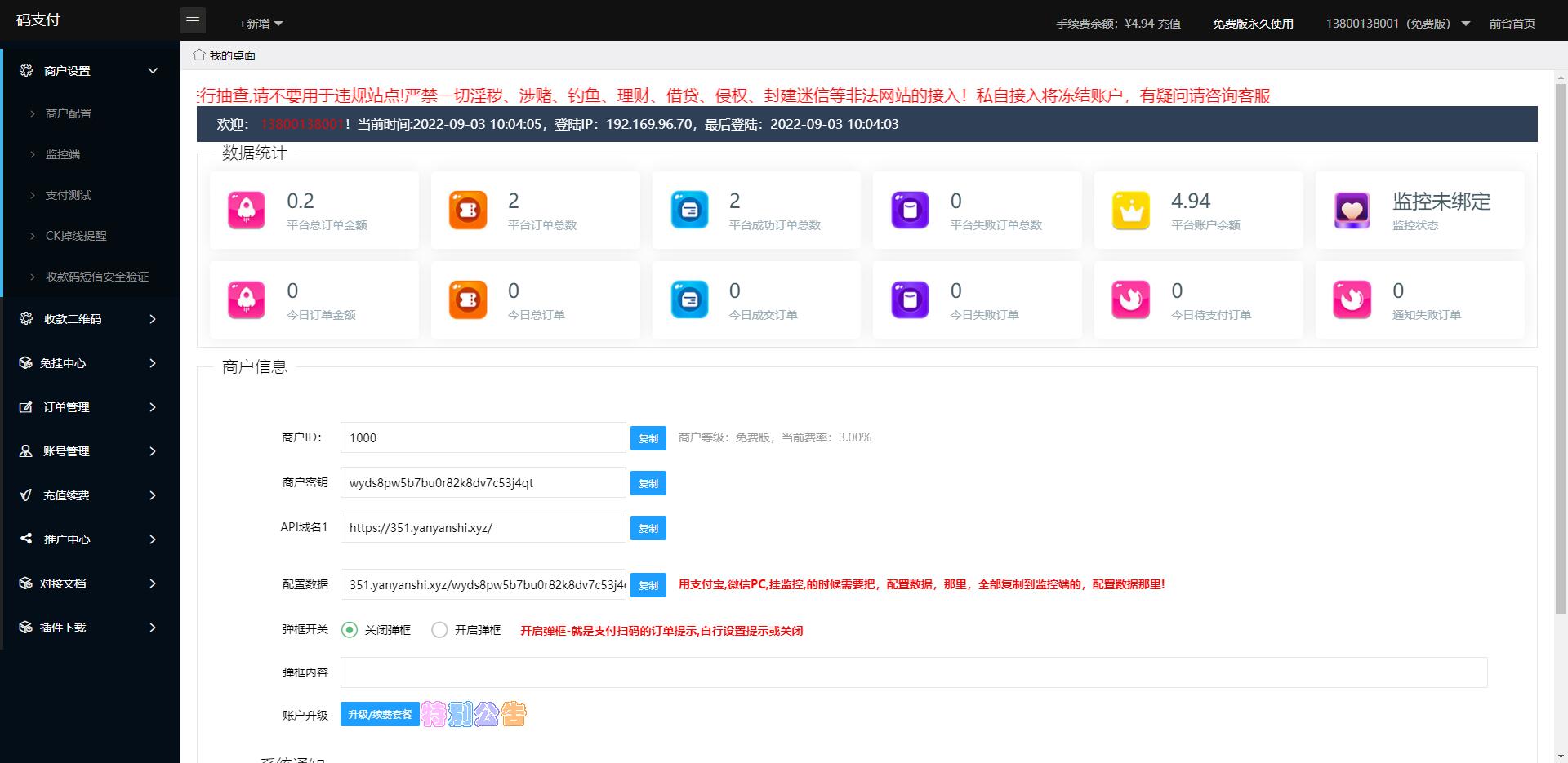 此款系统不用我多说了,现在别人还是一直在运营的,比那个源支付好多了,源支付的支付宝免挂新支付宝不行,风控支付宝不行,只能是个商家号才行