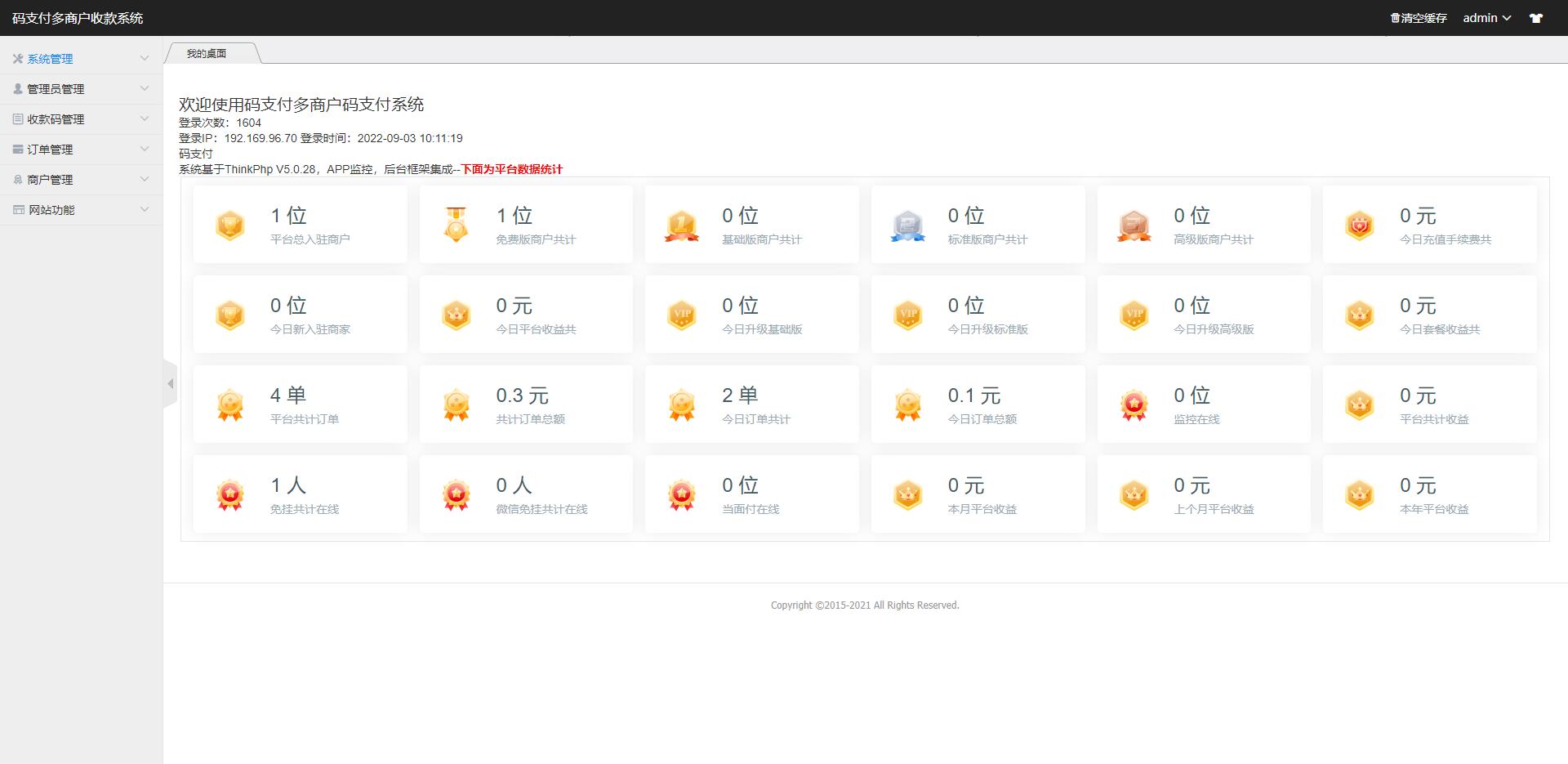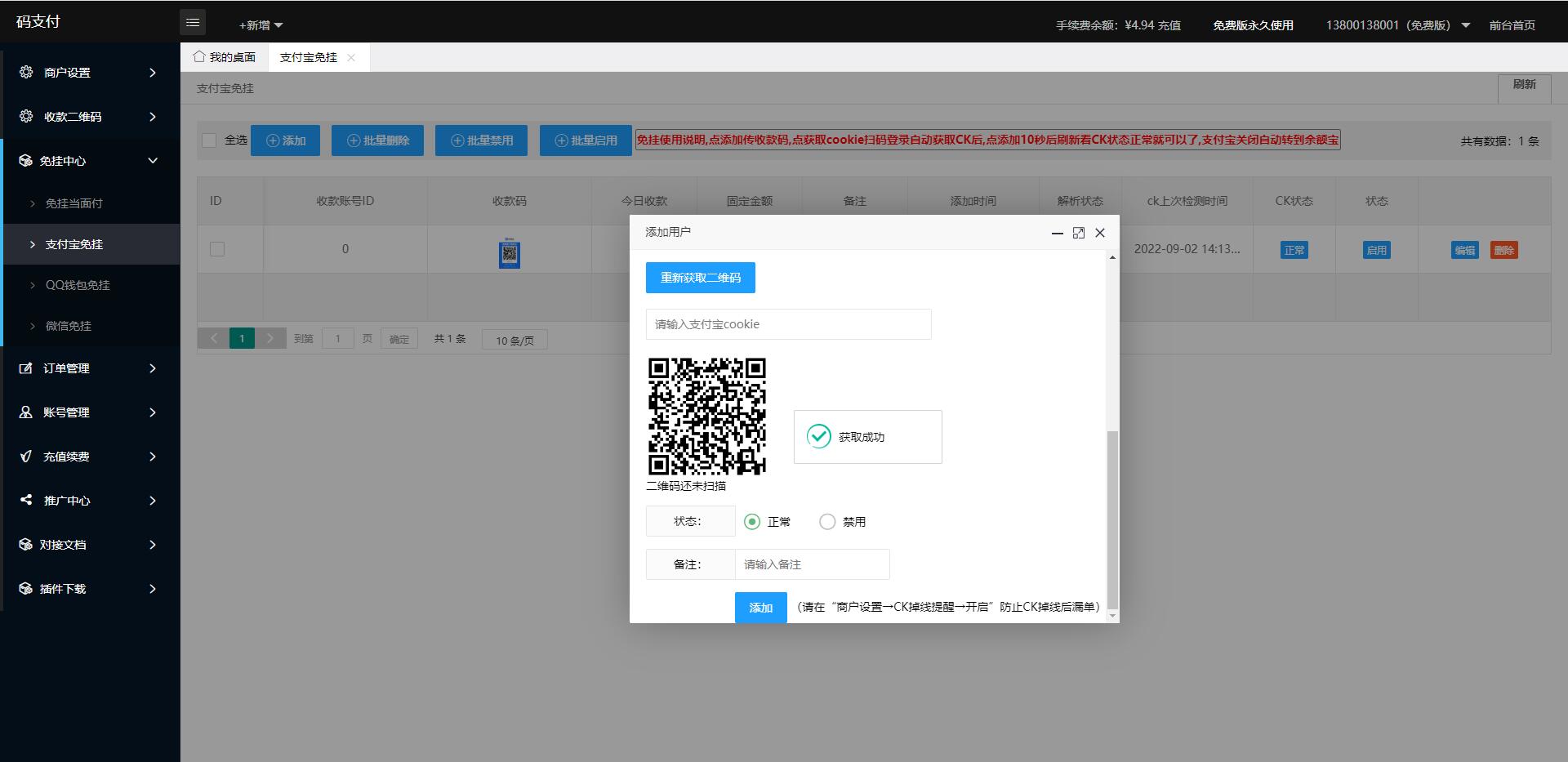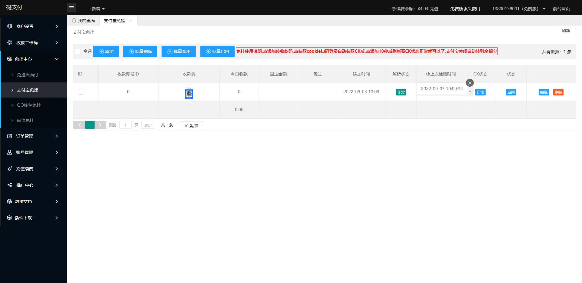 此系统是运营版的,不要跟以前发布的比较,相比都知道年初的时候支付宝更新了协议,网上那些免挂扫码的都失效了,以前发布的老版本也是的