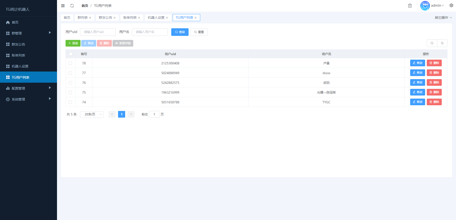 别人定制的TG统计机器人,后台功能强大 账单可后台一键导入,源码全开源无加密