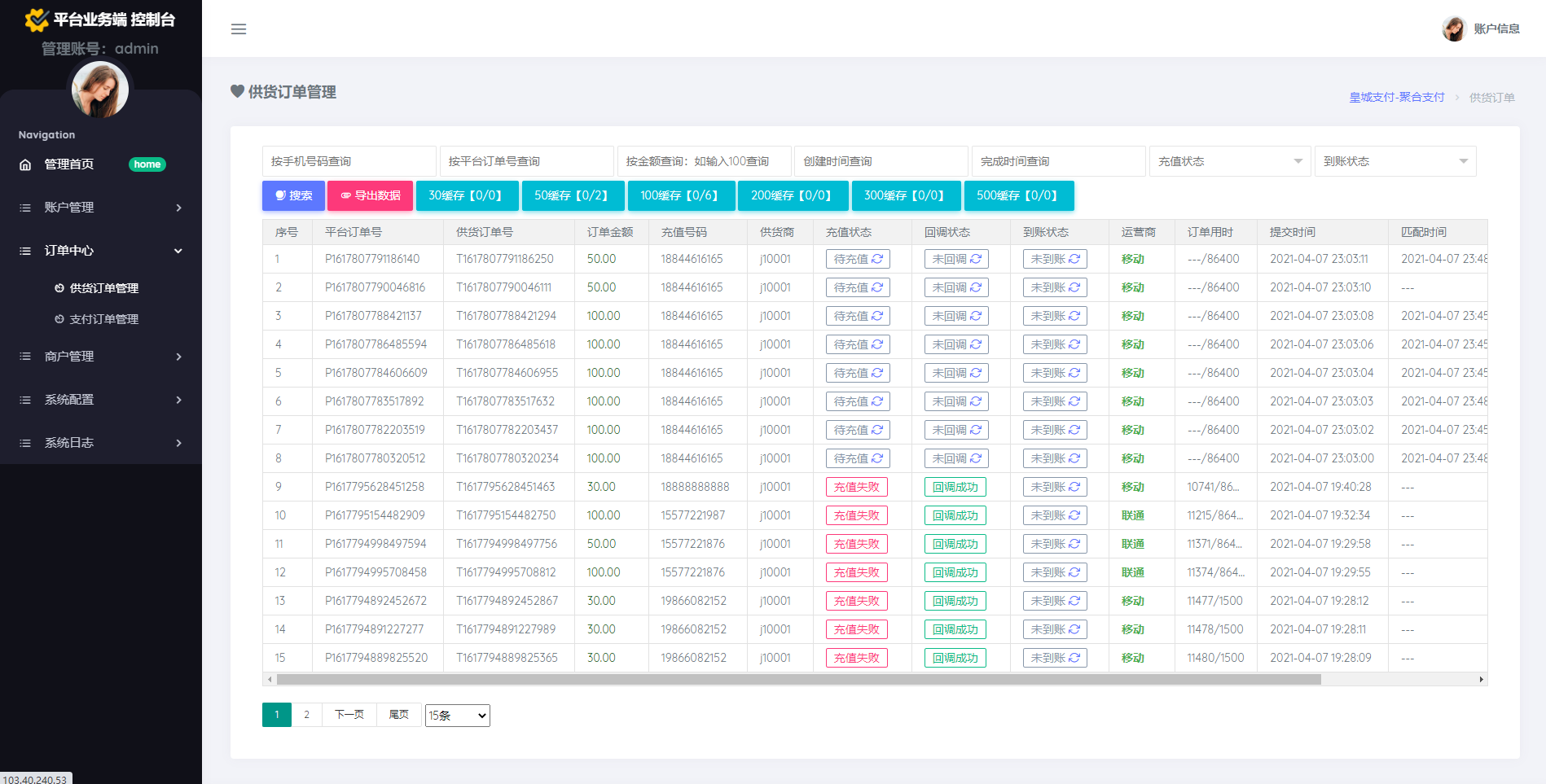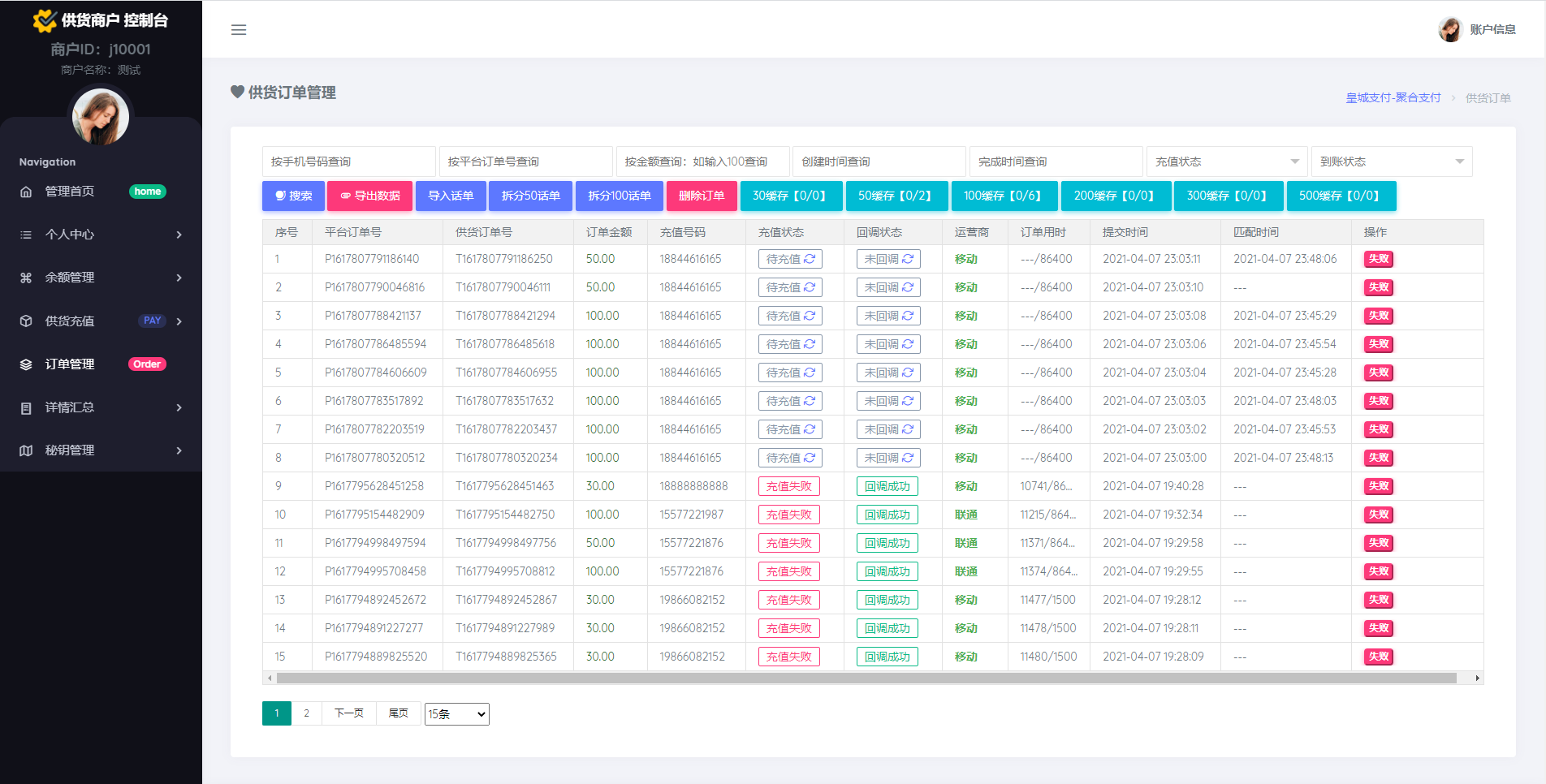④、自动检测号码是否已经完成充值返回官方订单号凭证给供应商反馈充值状态