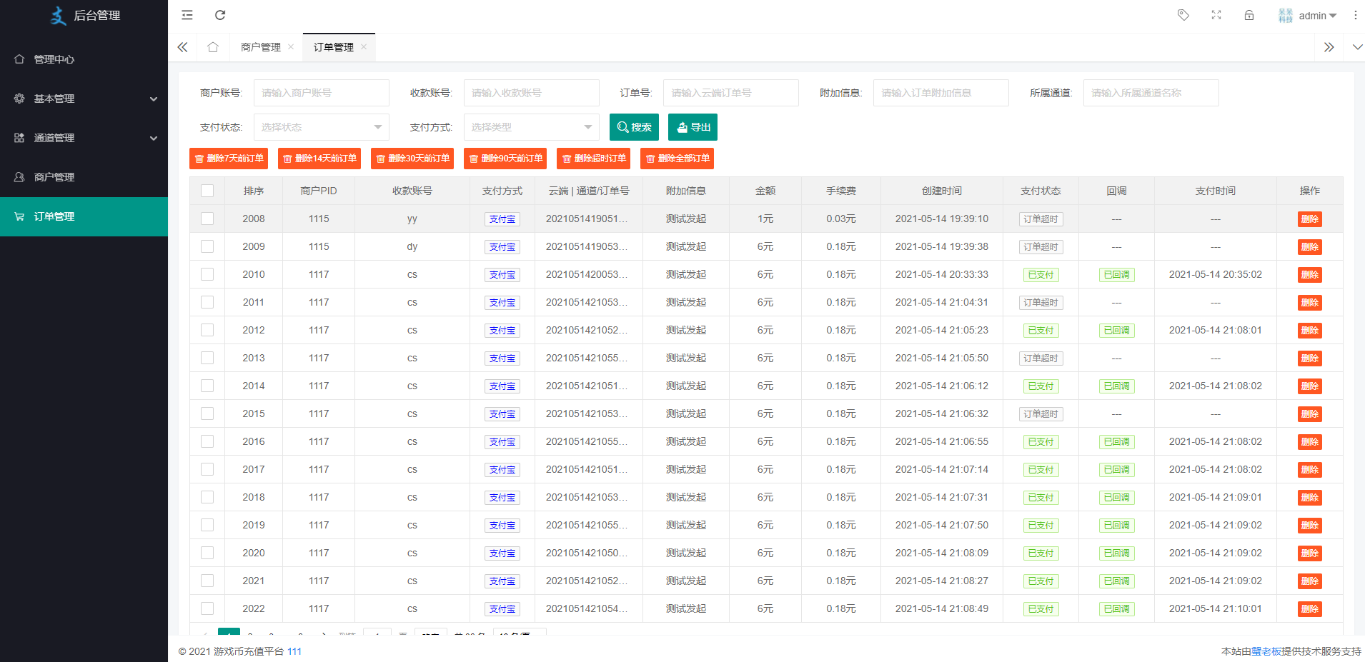 版本特性:全新UI,全新接口,系统为多商户版本,可招商入网,收取费率。回调稳定,抗并发,代码经过整理优化,使用起来稳定顺手