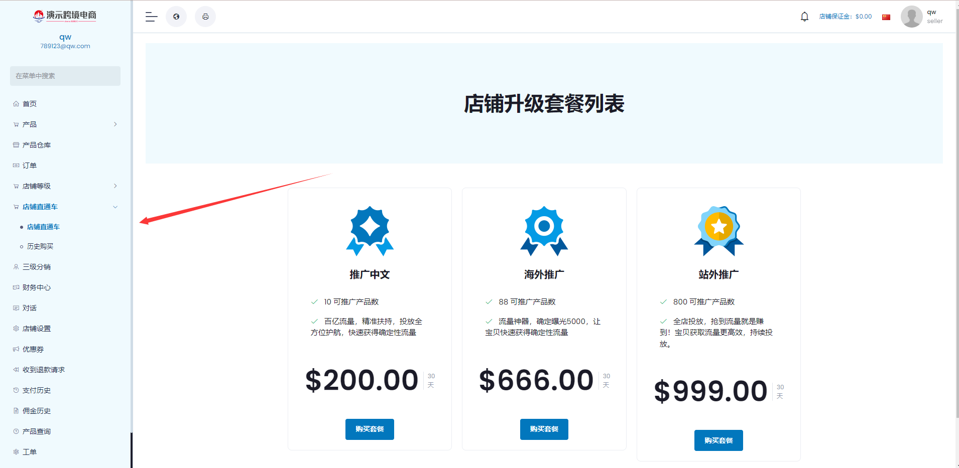 带最新的直通车+店铺保证金+三级分销+增加业务员代理功能