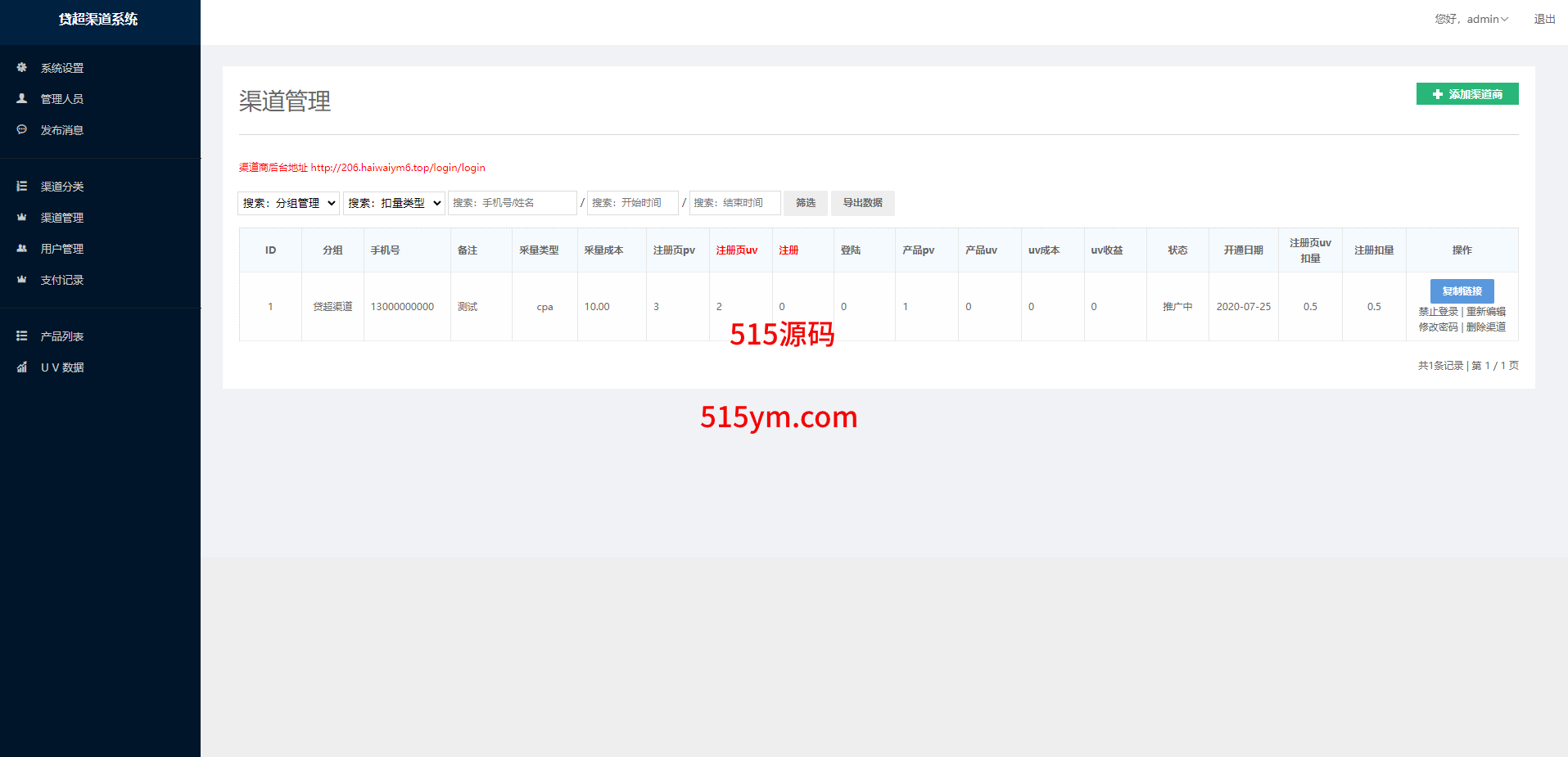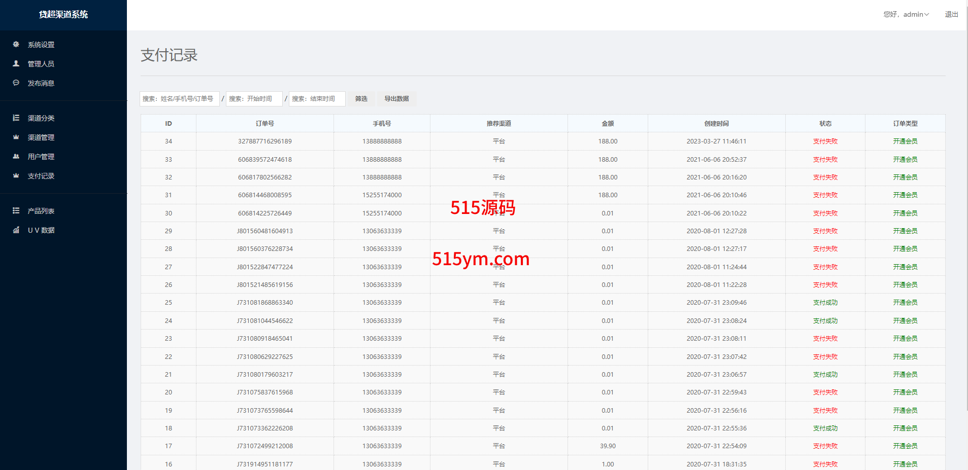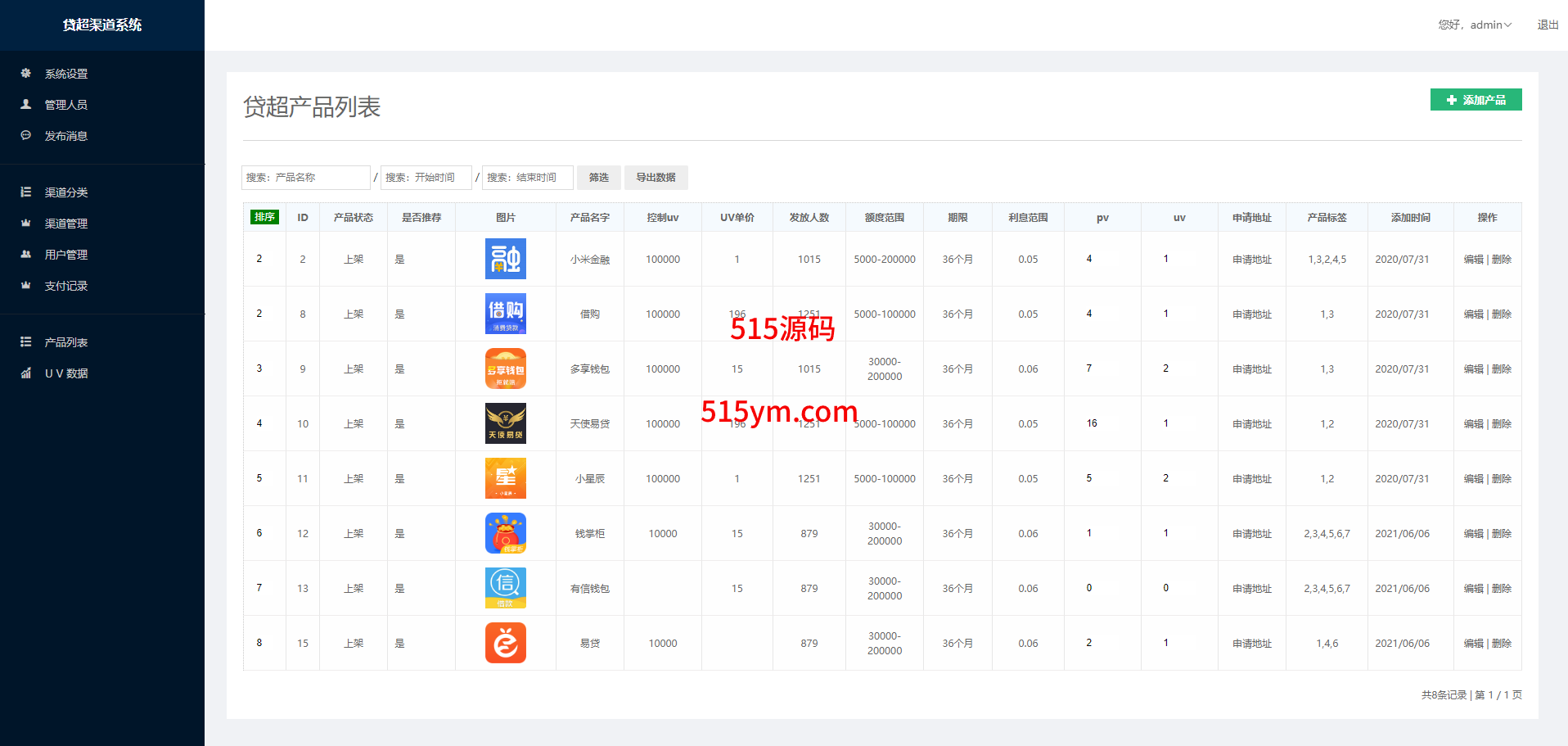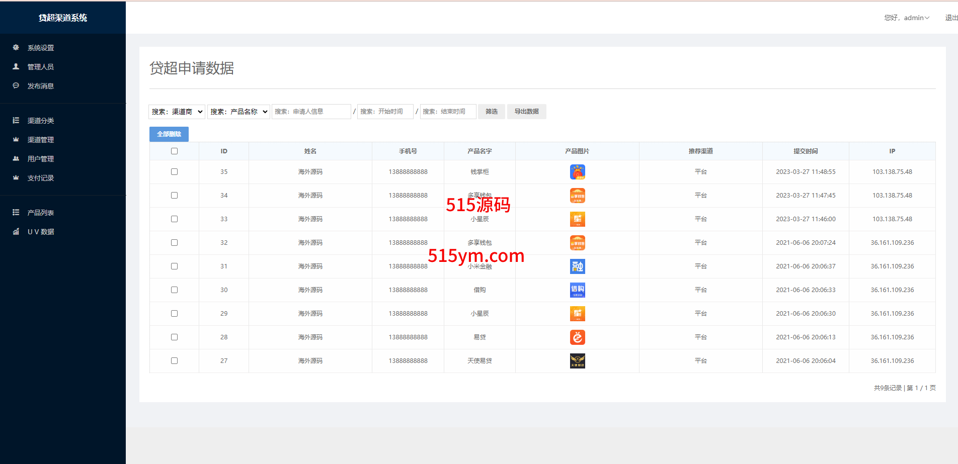 小额贷款超市系统功能齐全 UI大气 短信 支付 PV UV数据 渠道推广 扣量