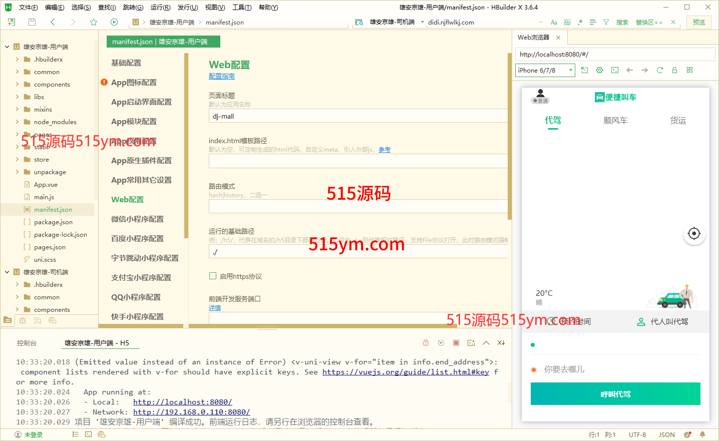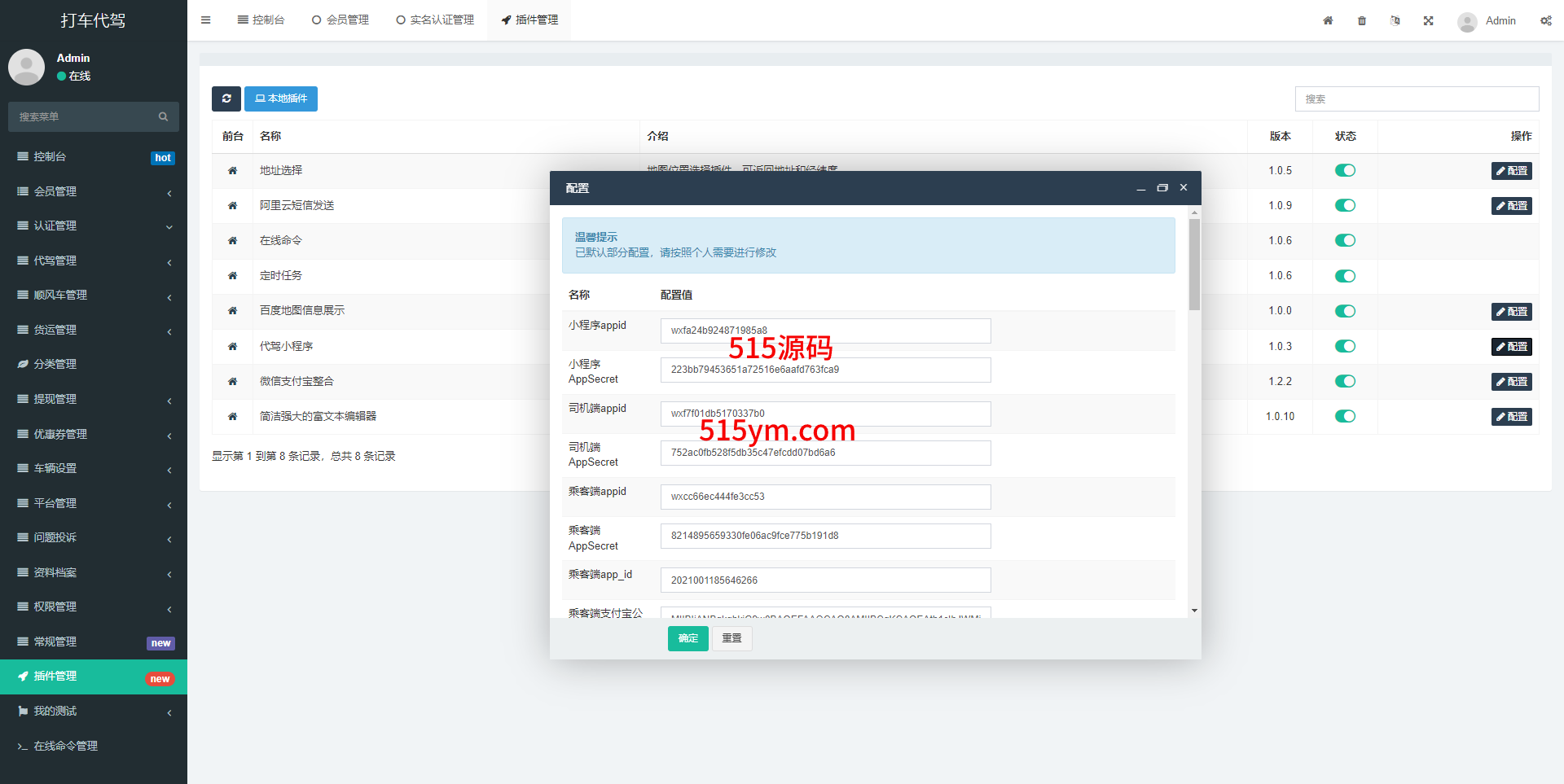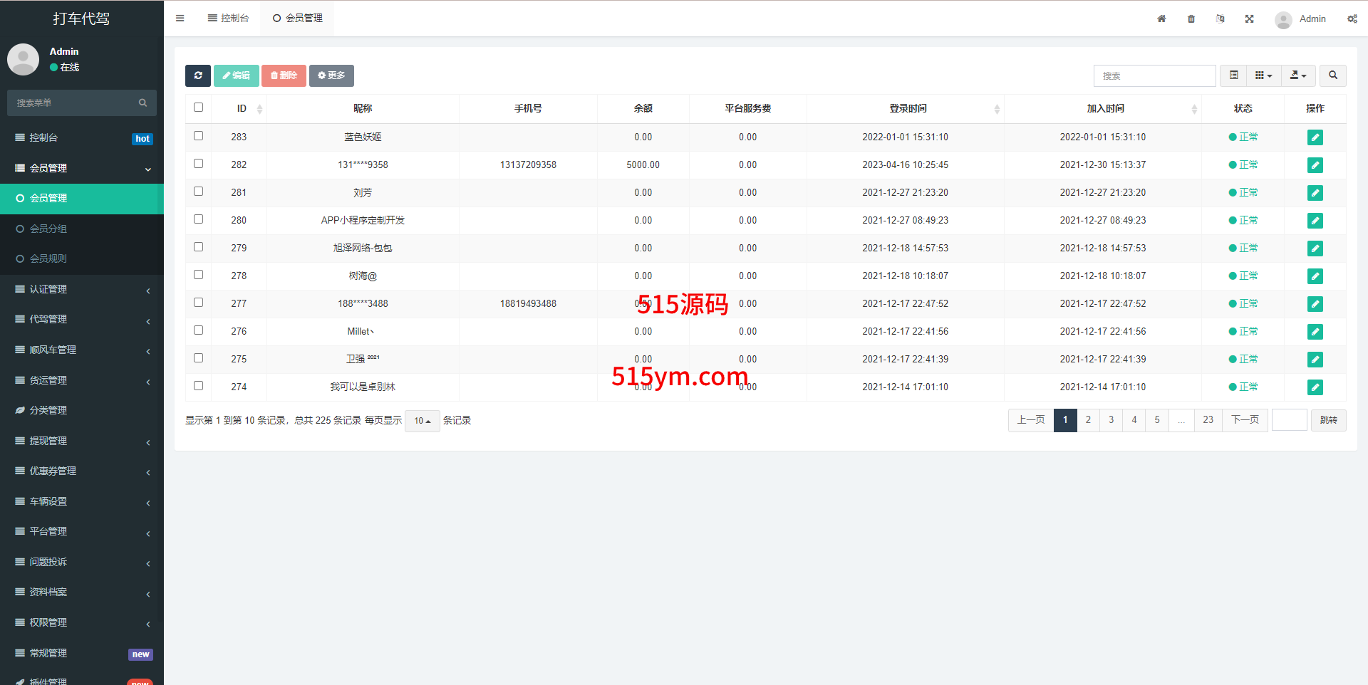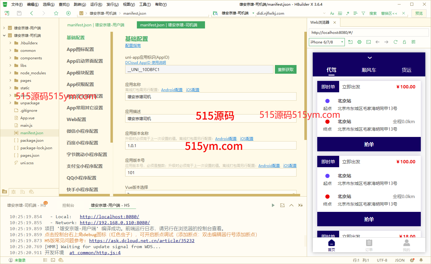 前端跟司机端均为uniapp源码,后端是Fastadmin框架,单源码无教程需要的来