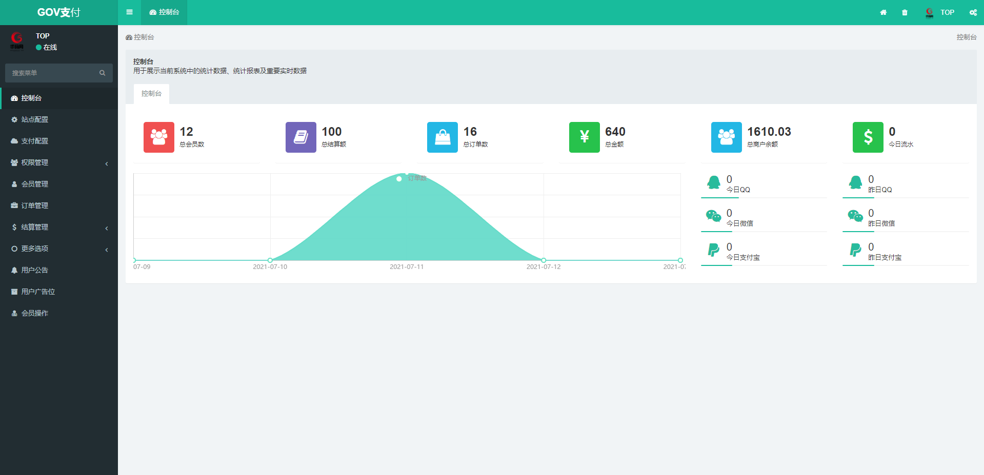 【帐号类型】系统后台多类型管理员、商户代理、普通商户、接口用户;对用的板块后台都不一样相关的数据统计齐全有效。