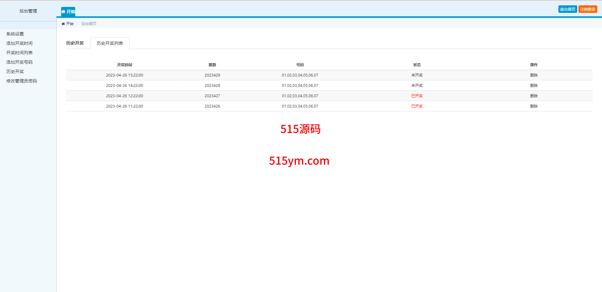 系统是澳门六合彩开奖网带开奖摇号视频,开奖的期数是自己后台手动添加的