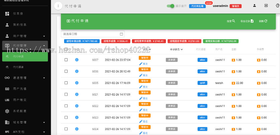 4、后台:后台可以随意添加删除通道、上游类型、账号、轮训规则等,使您的使用灵活配置;