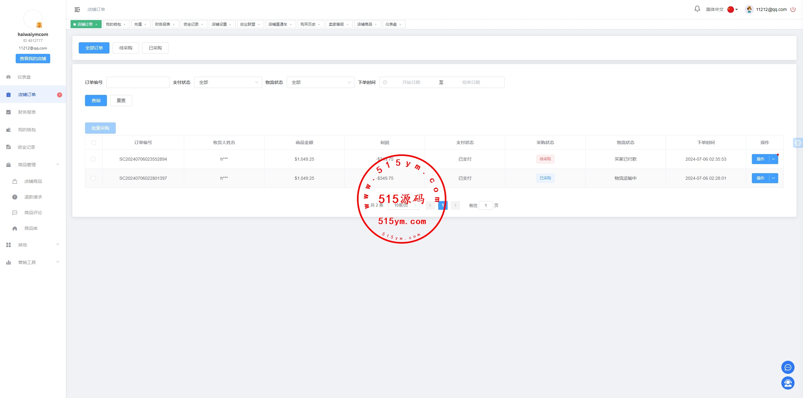 系统买家端+卖家端+代理端+后台管理端+客服端