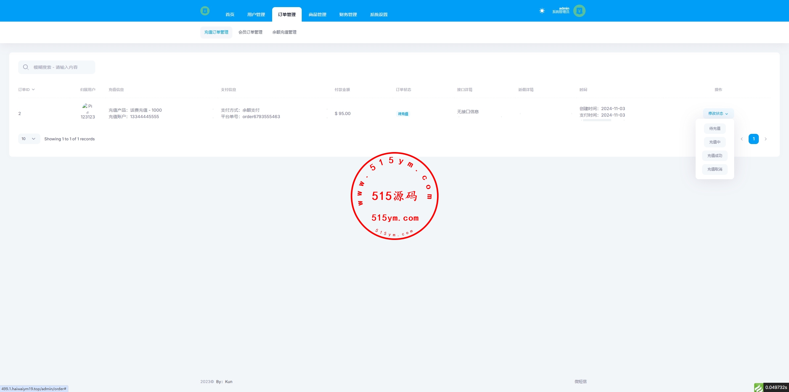 话费电费充值跑分系统可手动或者三方接口自动充值usdt充值后台手动审核订单