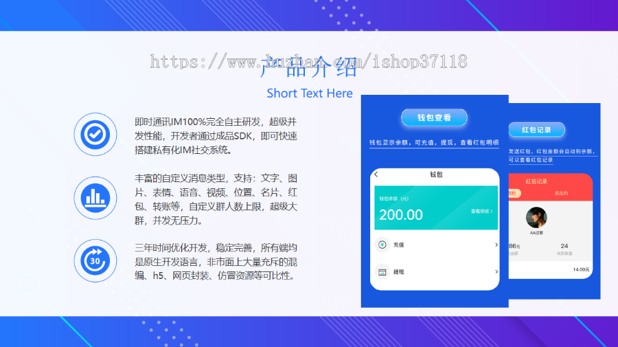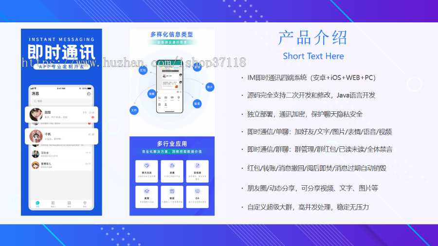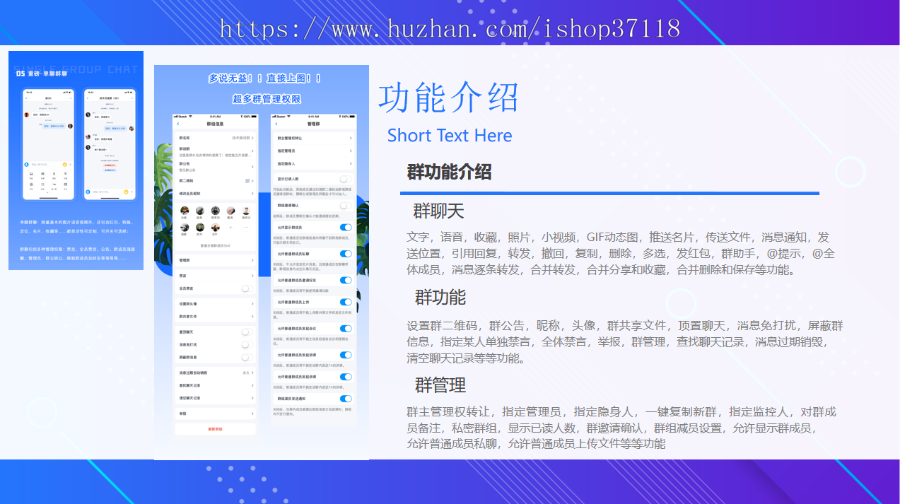 · 即时通信/群聊:群管理/群红包/已读未读/全体禁言