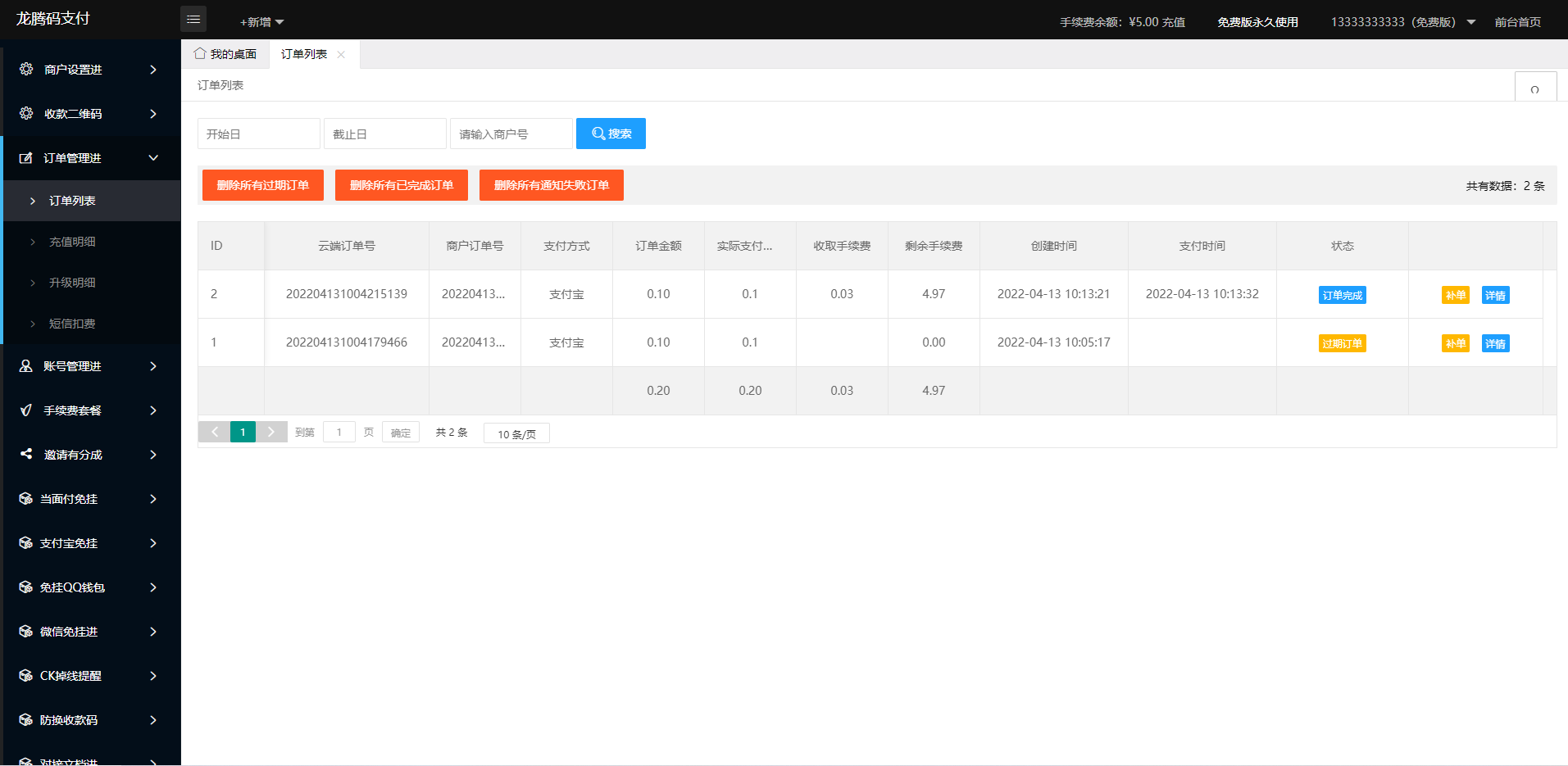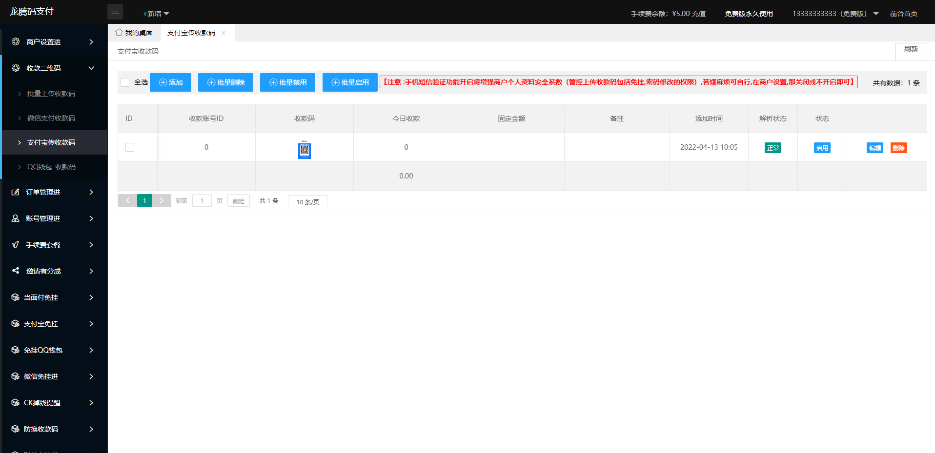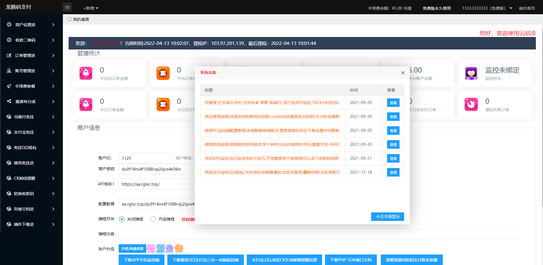 此系统是2022全新运营版的,不要跟以前发布的比较,相比都知道年初的时候支付宝更新了协议,网上那些免挂扫码的都失效了,以前发布的老版本也是的