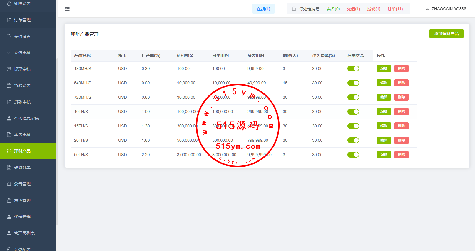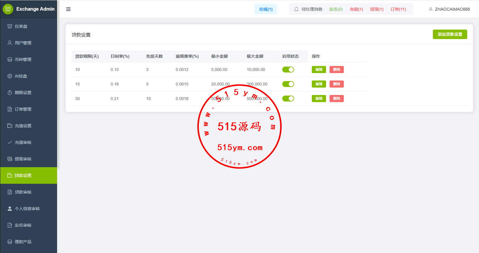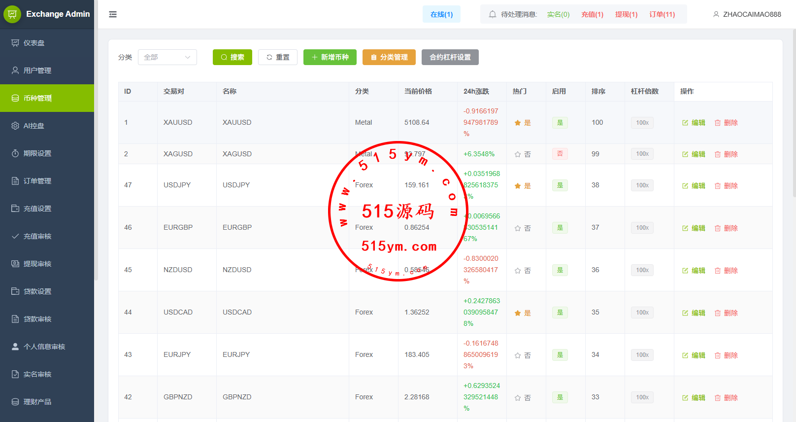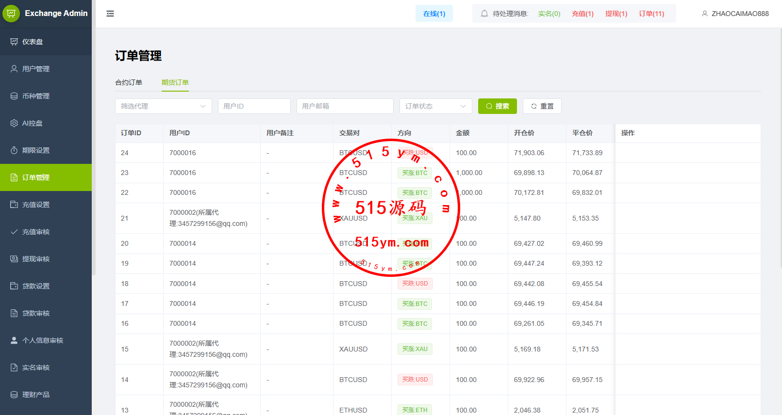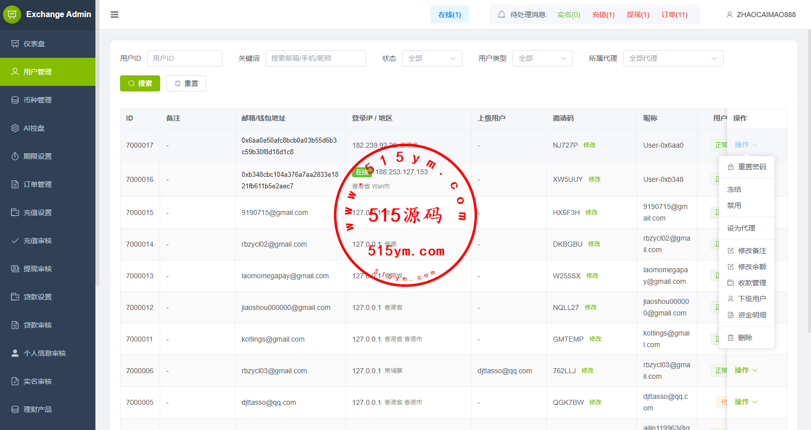 功能支持:合约,期权,贷款,理财,实名认证,权限代理,AI控盘等功能