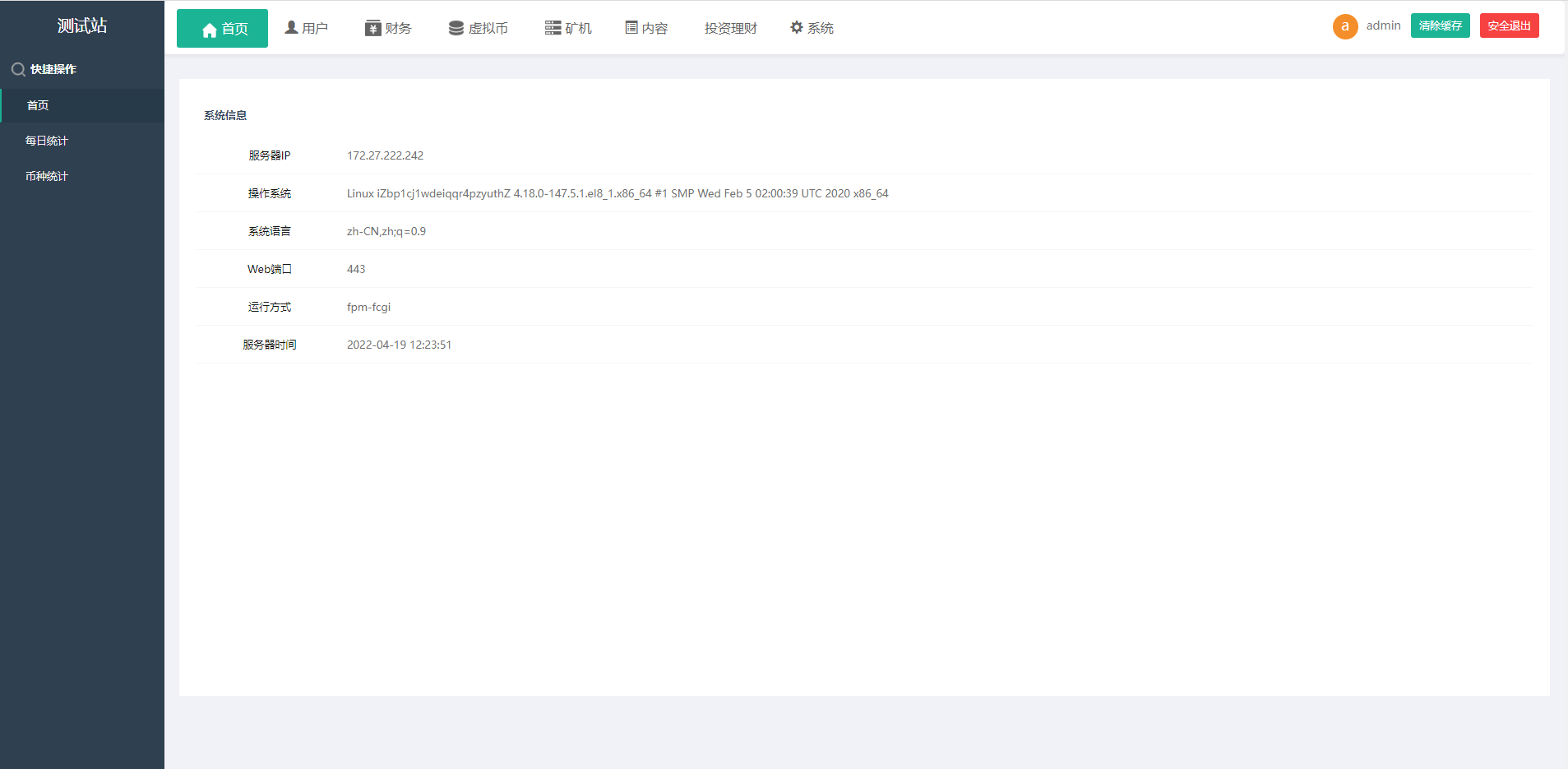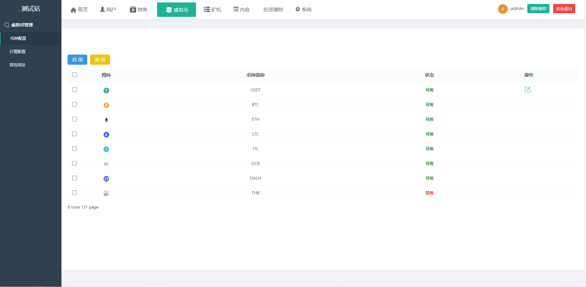 财务:财务明细,转出审核,充值审核,收款地址,账户明细,收益领取明细