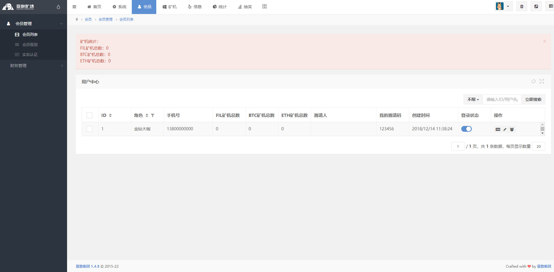 6、每日产出根据全网平均值,产出来的币平台可自定义设定比例分成,比如XCH、FIL、BZZ平台收取百分之20.用户获得百分之80