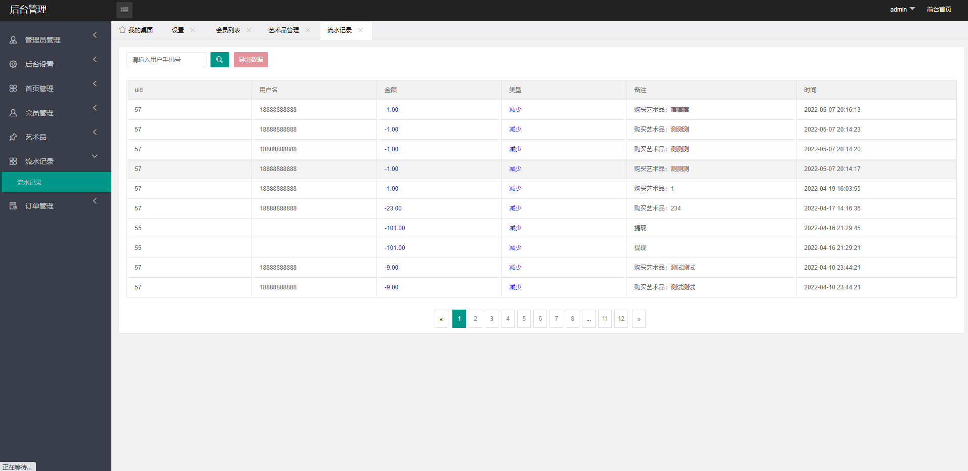 后台提现申请这里,如果提现通过的话,那么前端余额明细这里就会显示提现已成功,请前去查看,如果财务人员付款的时候发现账号不对,那就给他驳回,驳回的时候财务给他手动编写一段理由,这个理由要展示在余额明细这里,做一个通知提醒。具体看图,余额主要记录余额的明细变化