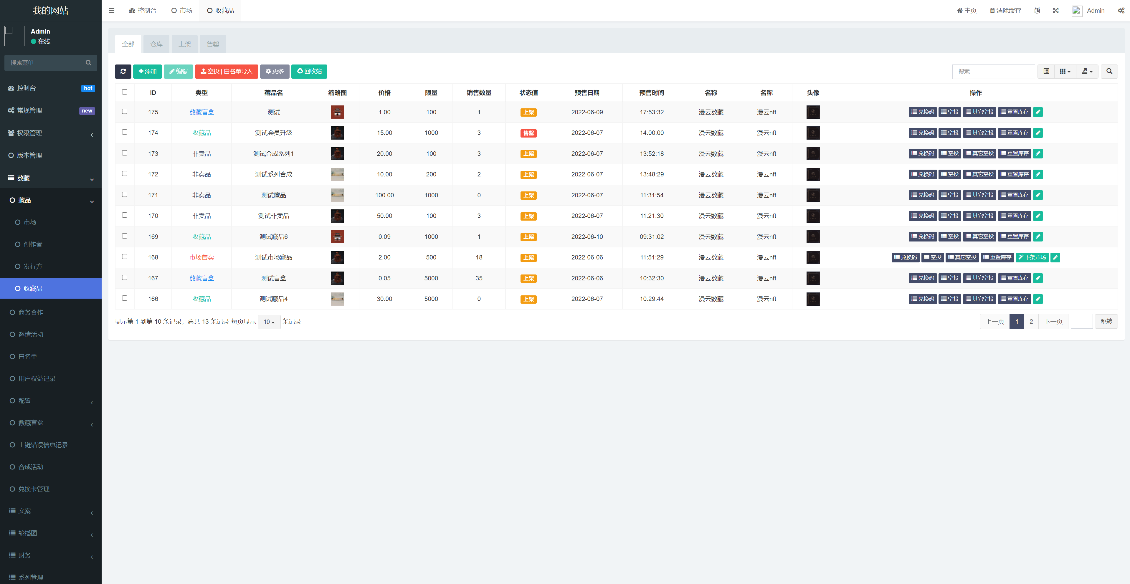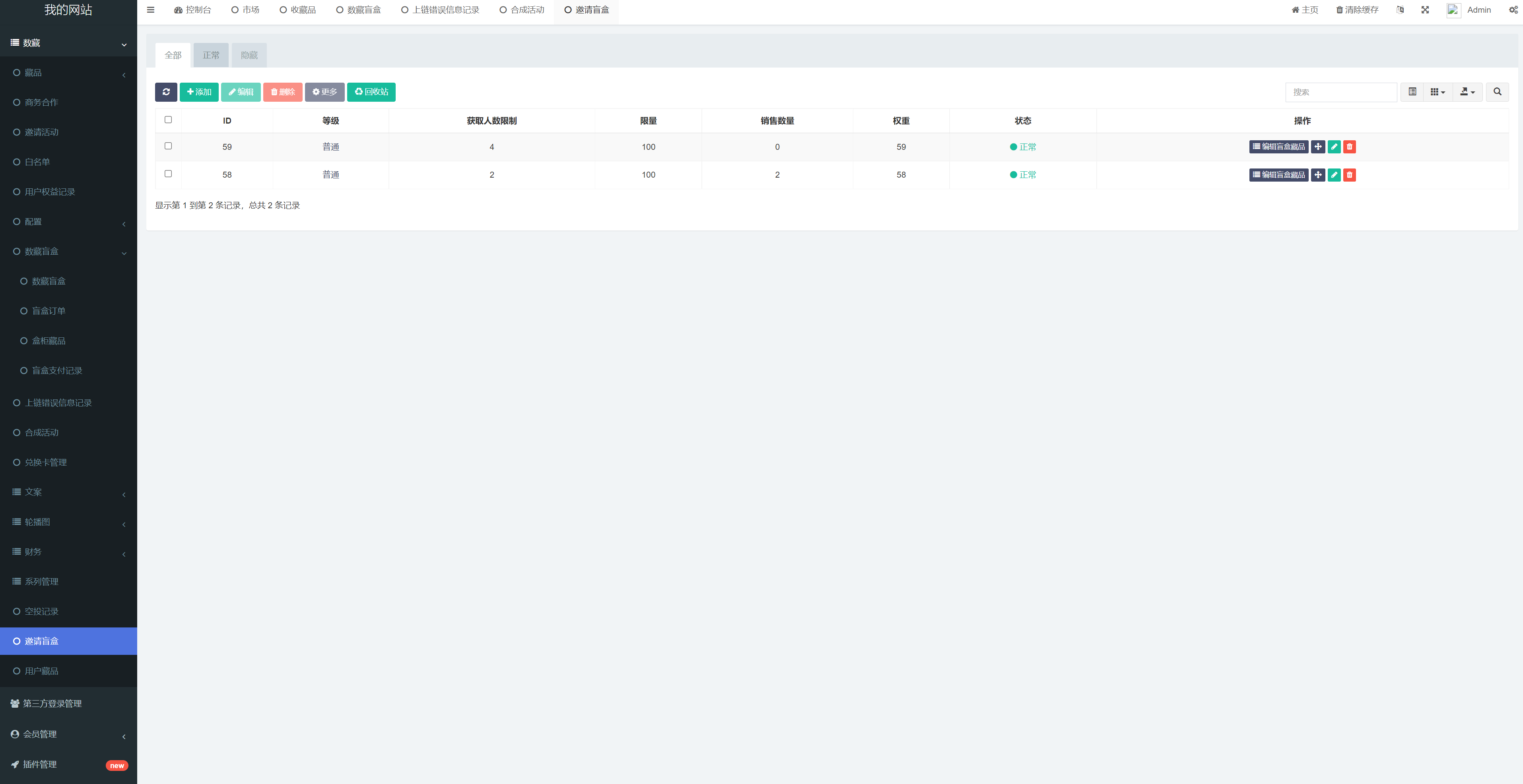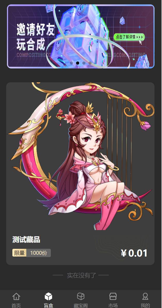 5.盲盒:购买盲盒随机抽取藏品,后台可设置盲盒中的奖品