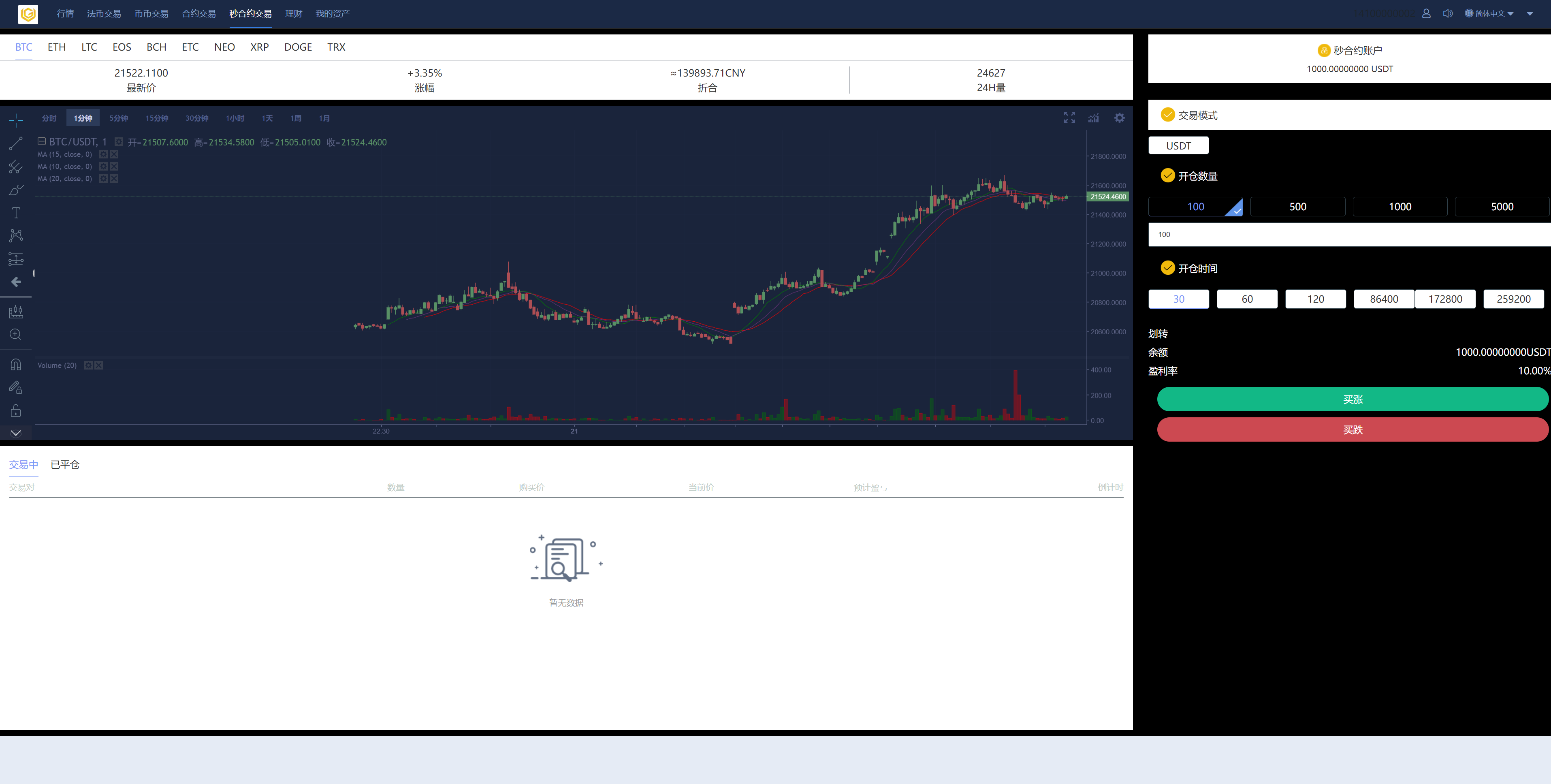 多语言交易所系统/币币交易/秒合约交易所/PC端VUE/手机端uniapp