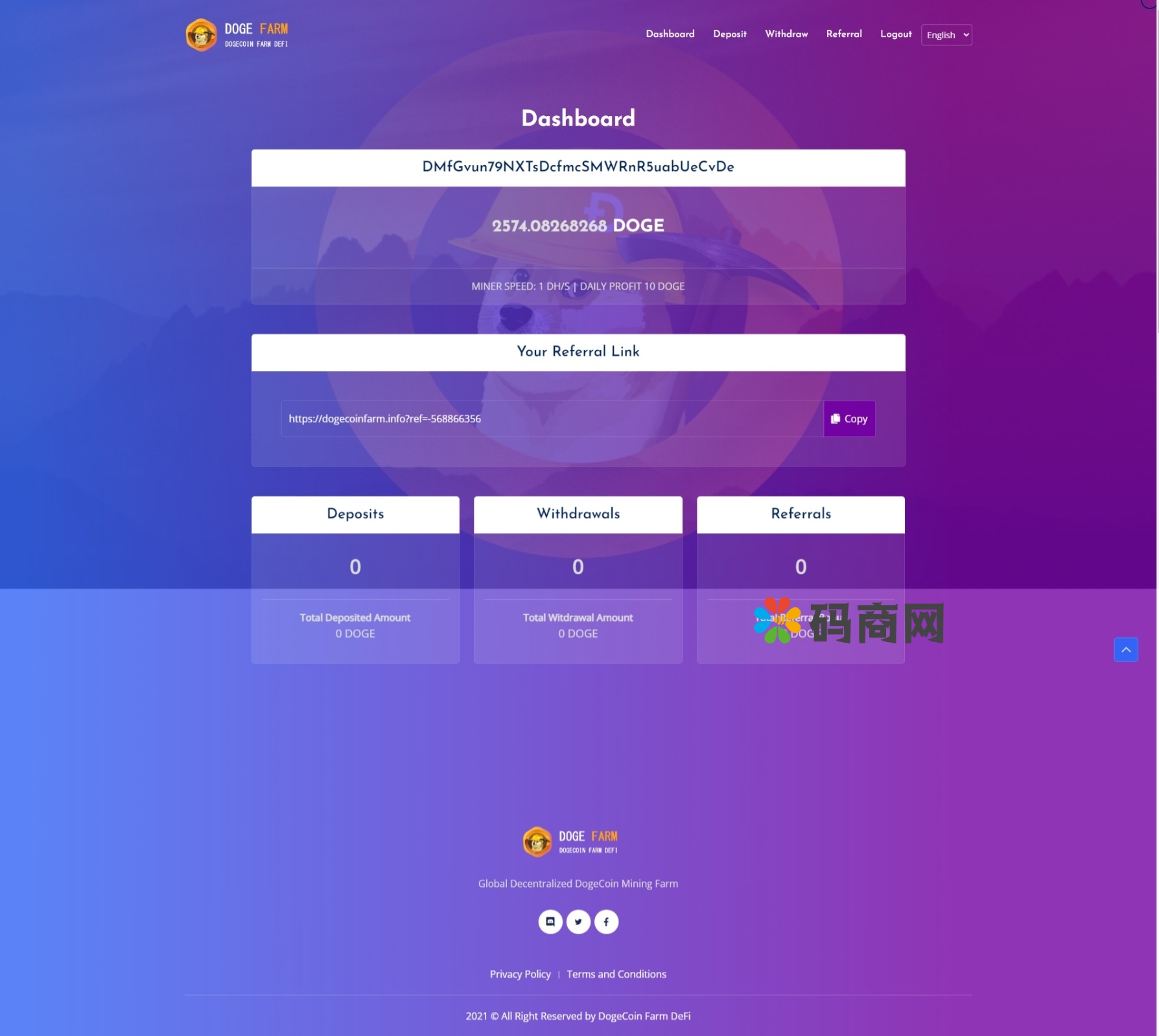 独家狗狗币DeFi农场,只需要输入钱包地址即可存币生息