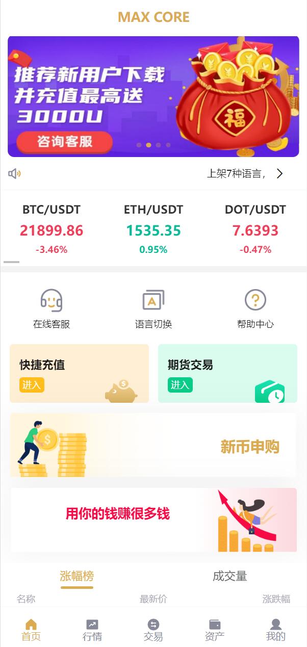 此套是一款全新开发的交易所支持期权、币币、质押挖矿、新币申购等功能