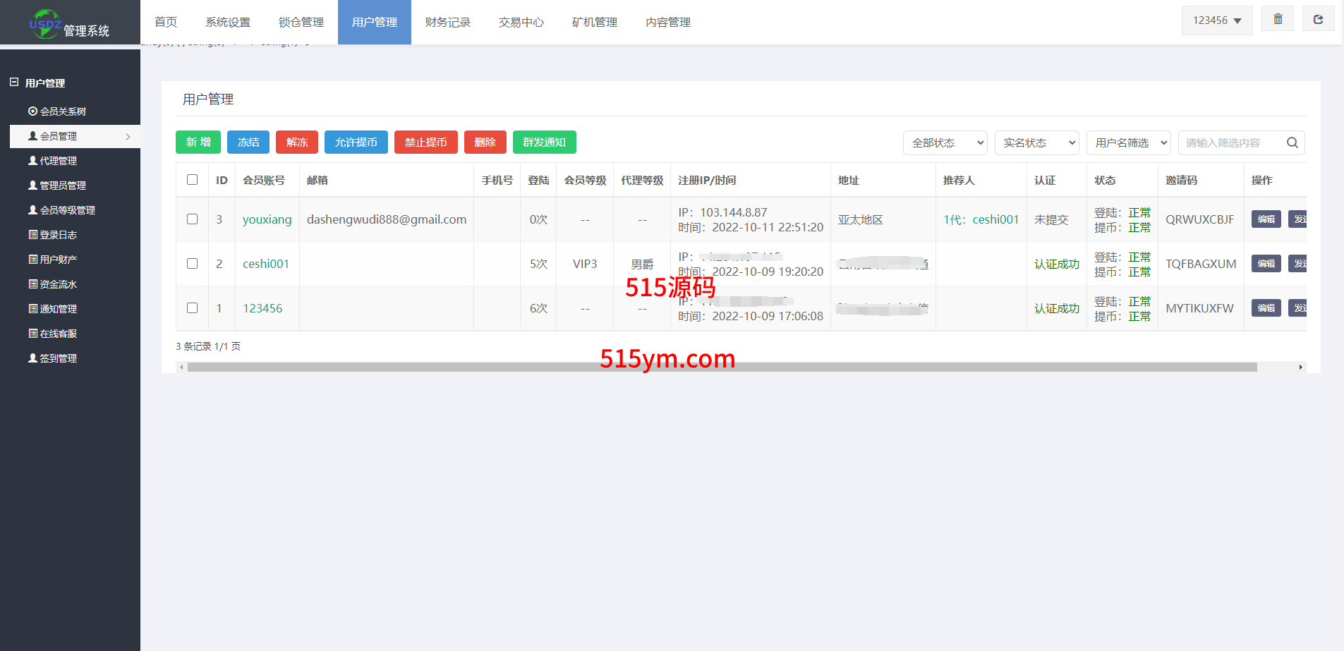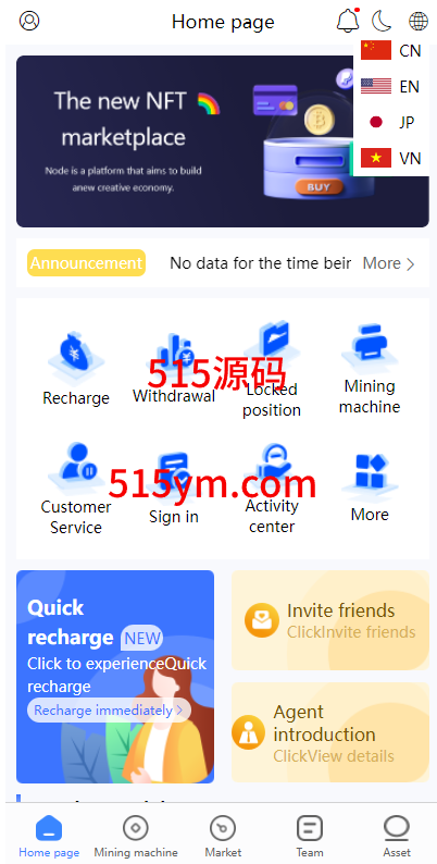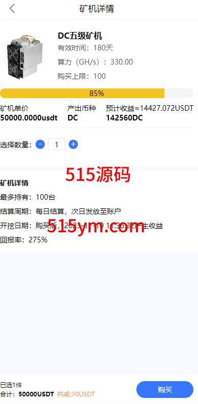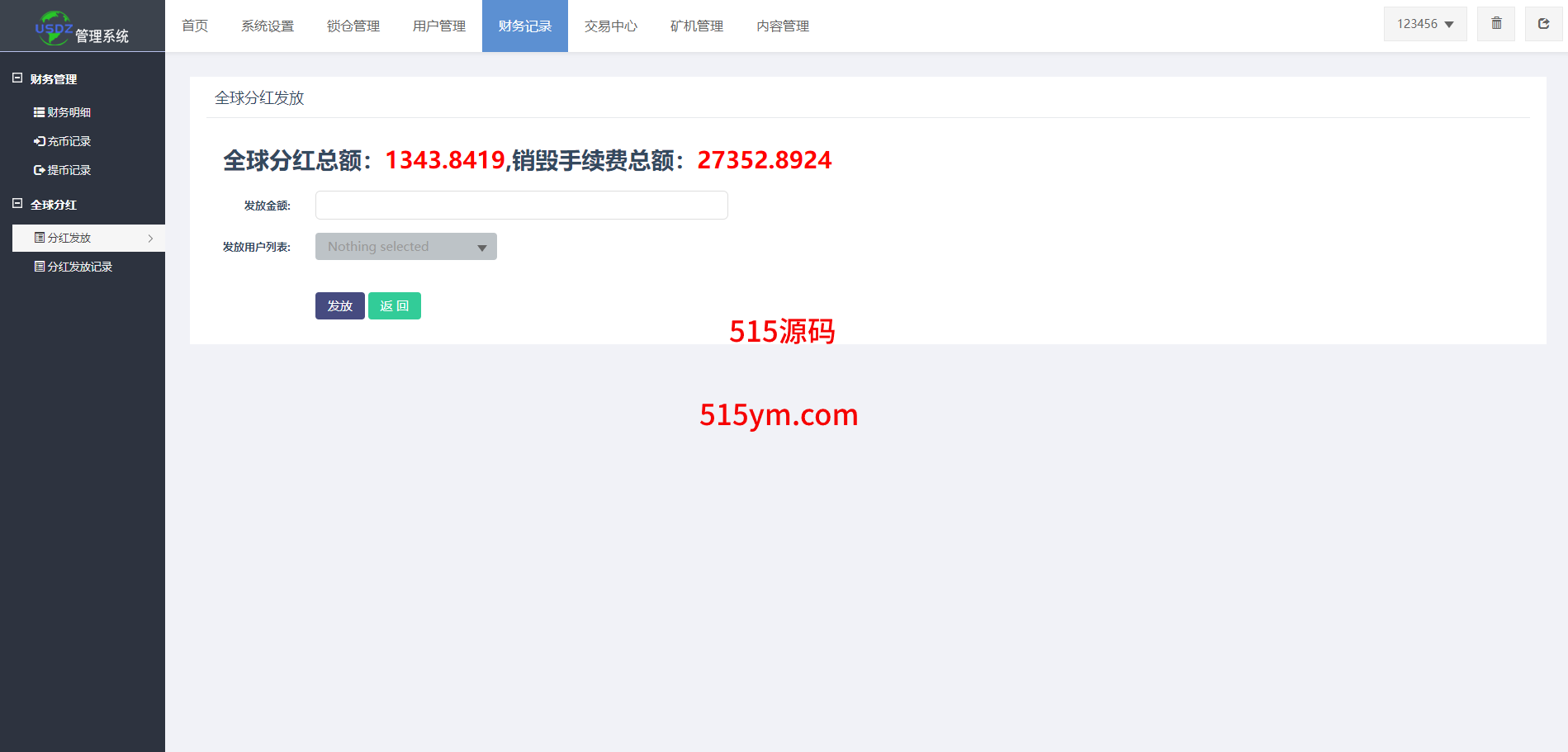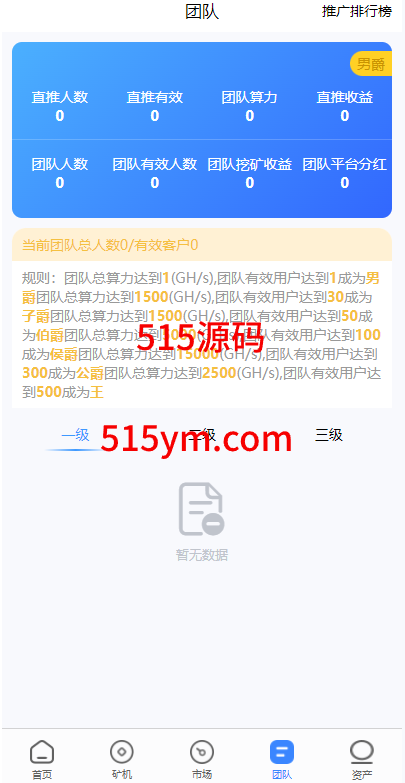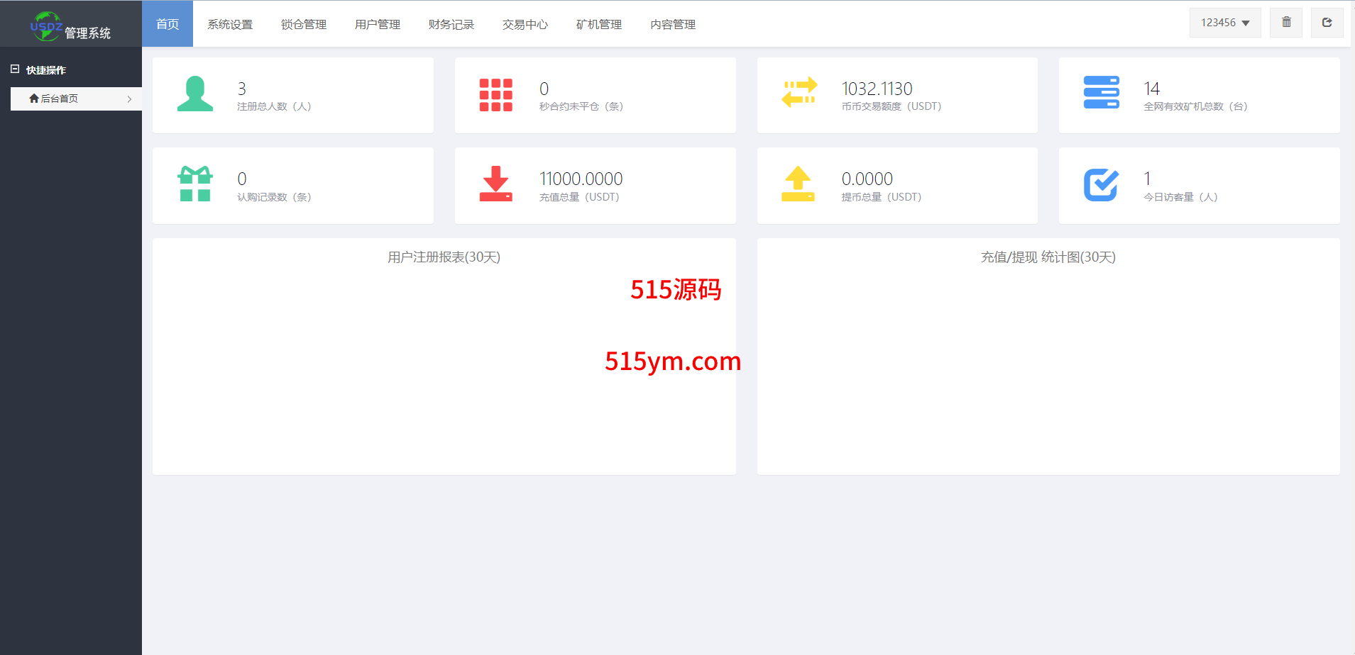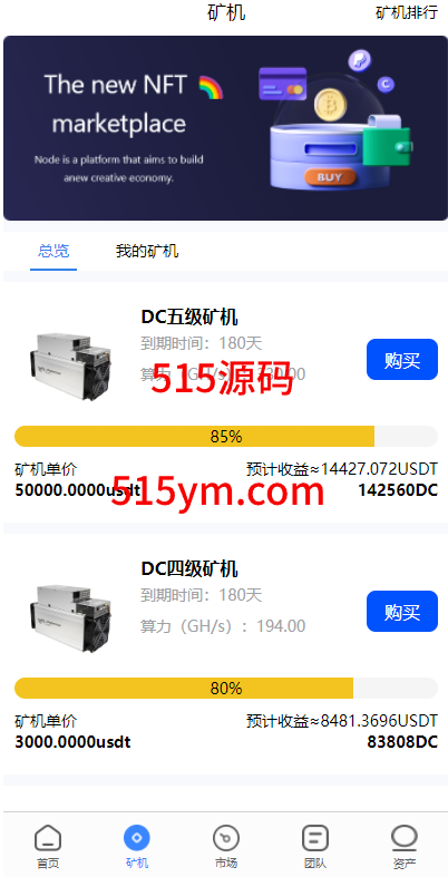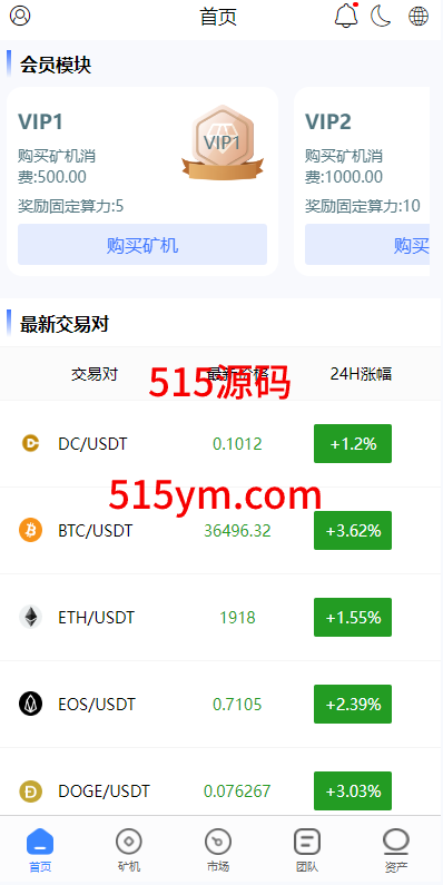 系统是定制版的矿机投资系统,功能有:购买矿机、活期锁仓、平台币市场交易、三级分销、签到、全球分红等多个功能