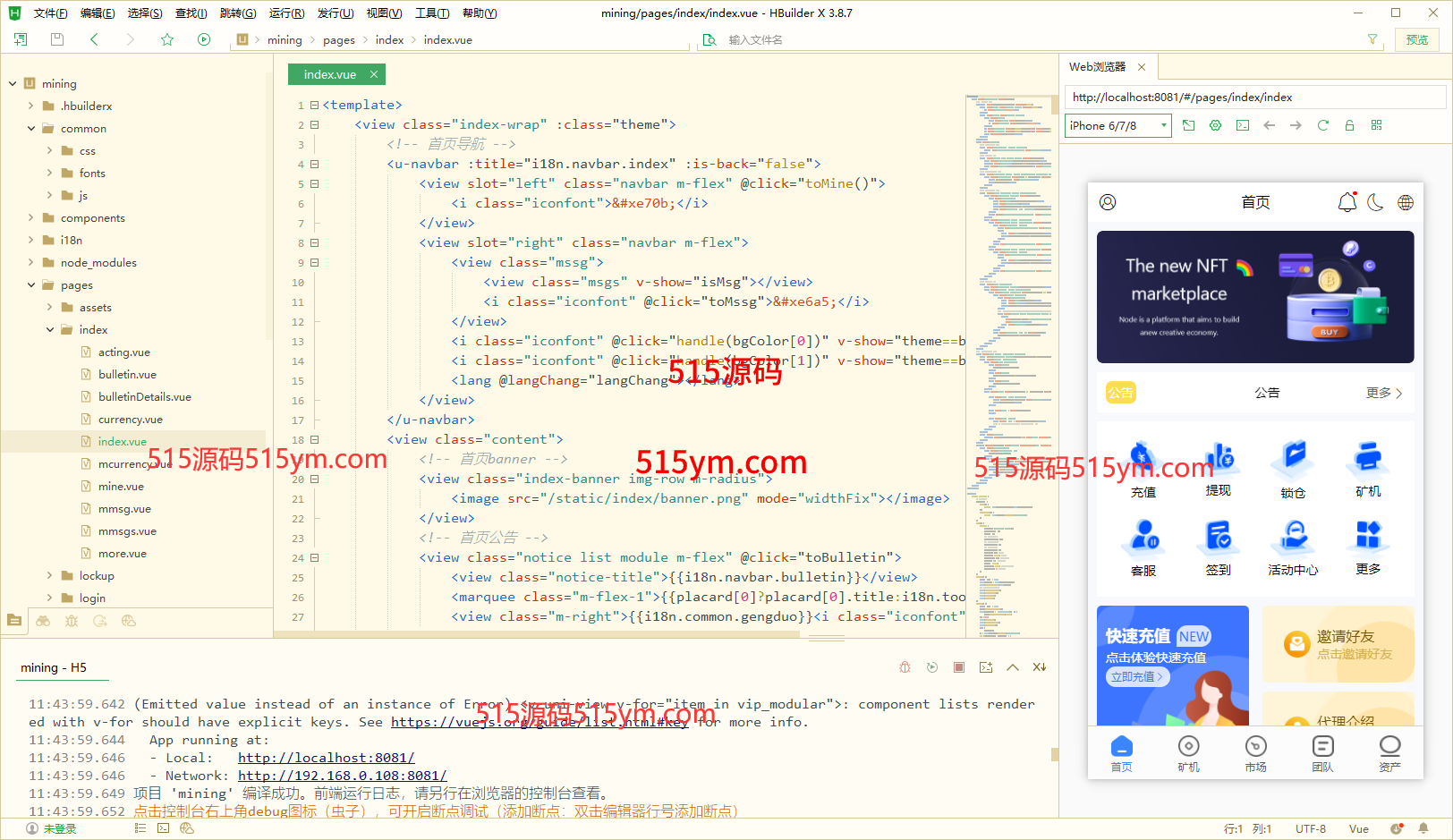 源码全开源的带完整教程,pc端是vue开发,手机端是uinapp开发带源码