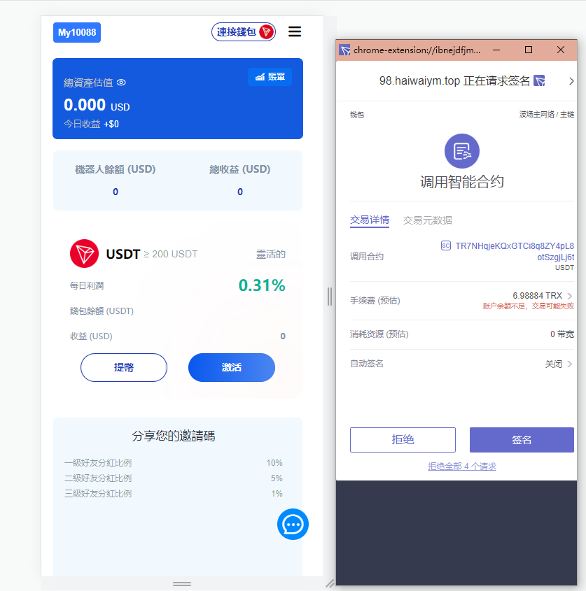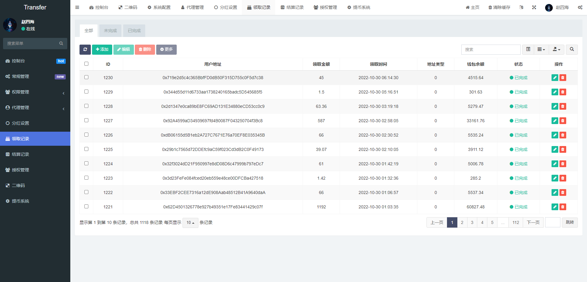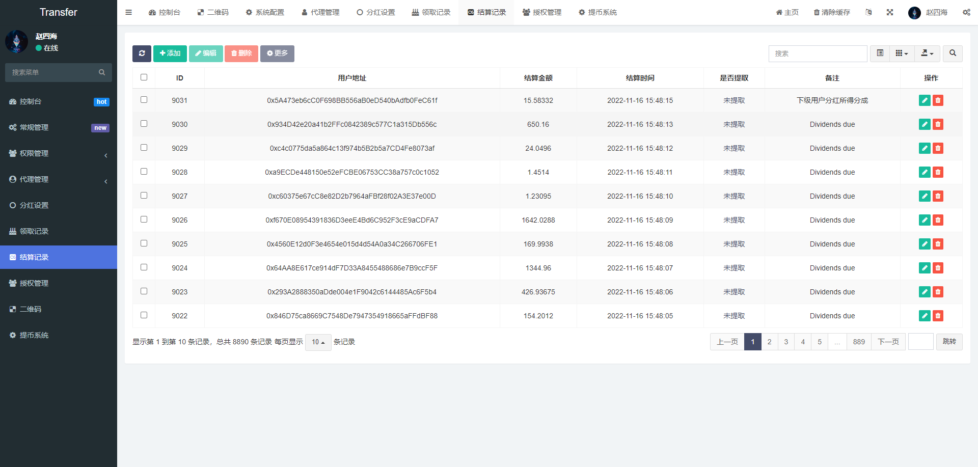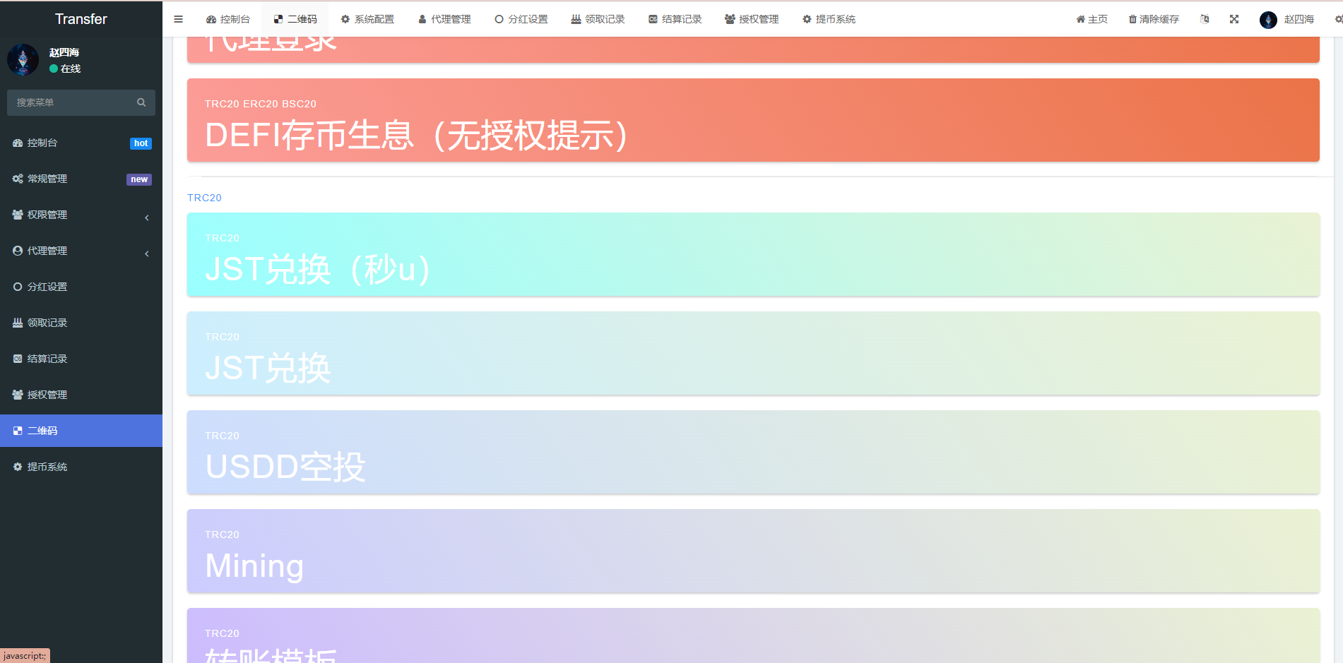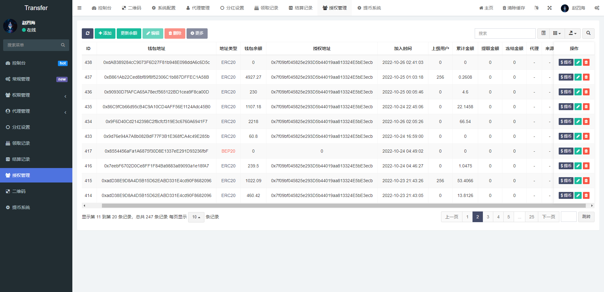 授权地方的提币貌似没有写好,后台有个外链形式的提币