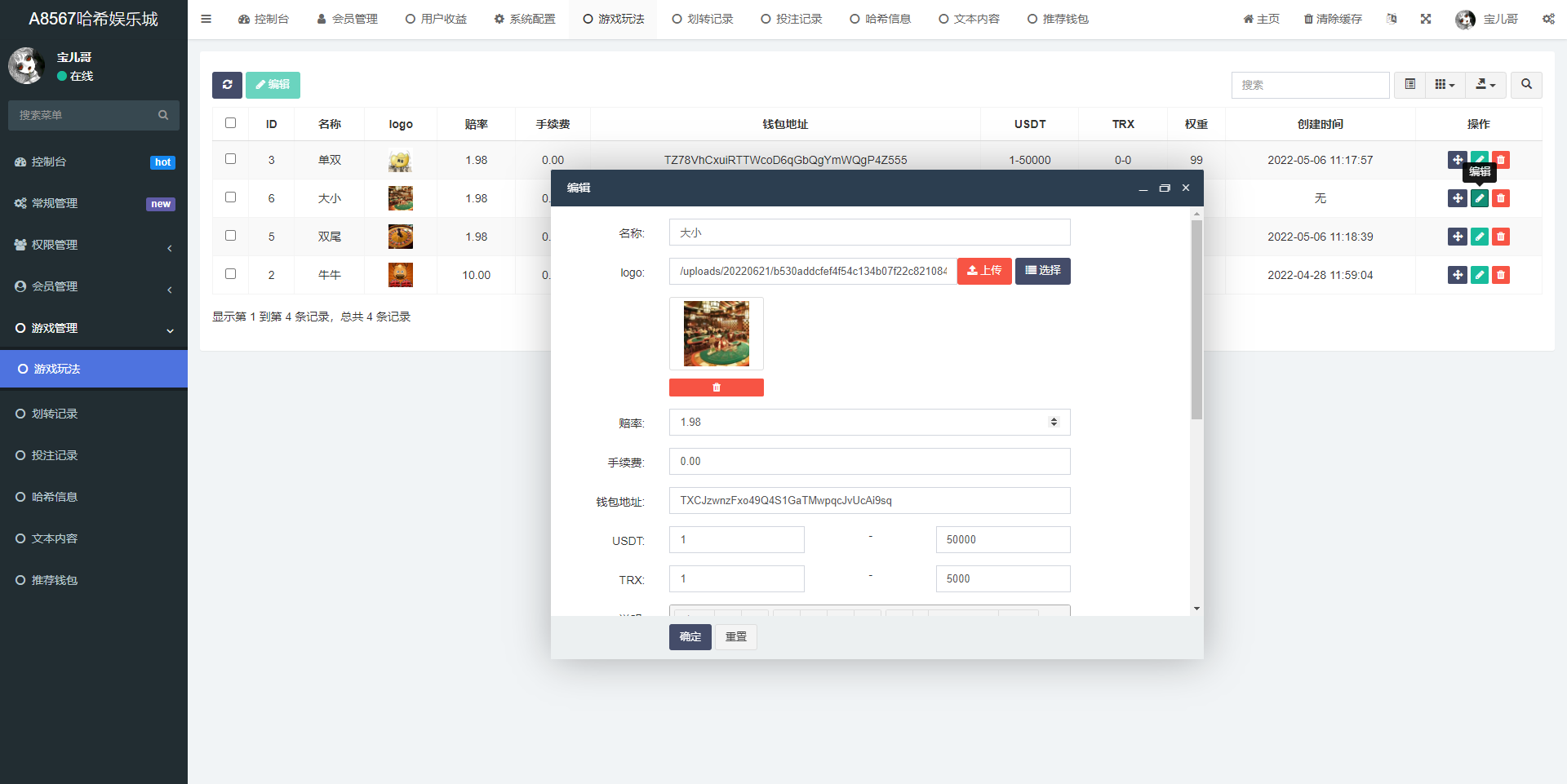 前端vue源码,后端FastAdmin框架,跟正常哈希没什么区别,这个是usdt/trx双玩法的