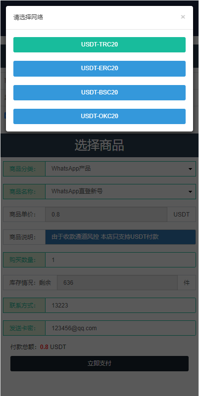 这个只有单模板,无后台,无数据库,秒余额秒u,配置好收款地址就可以,支持trc、erc、bsc、okc 里面可以配置电报机器人通知