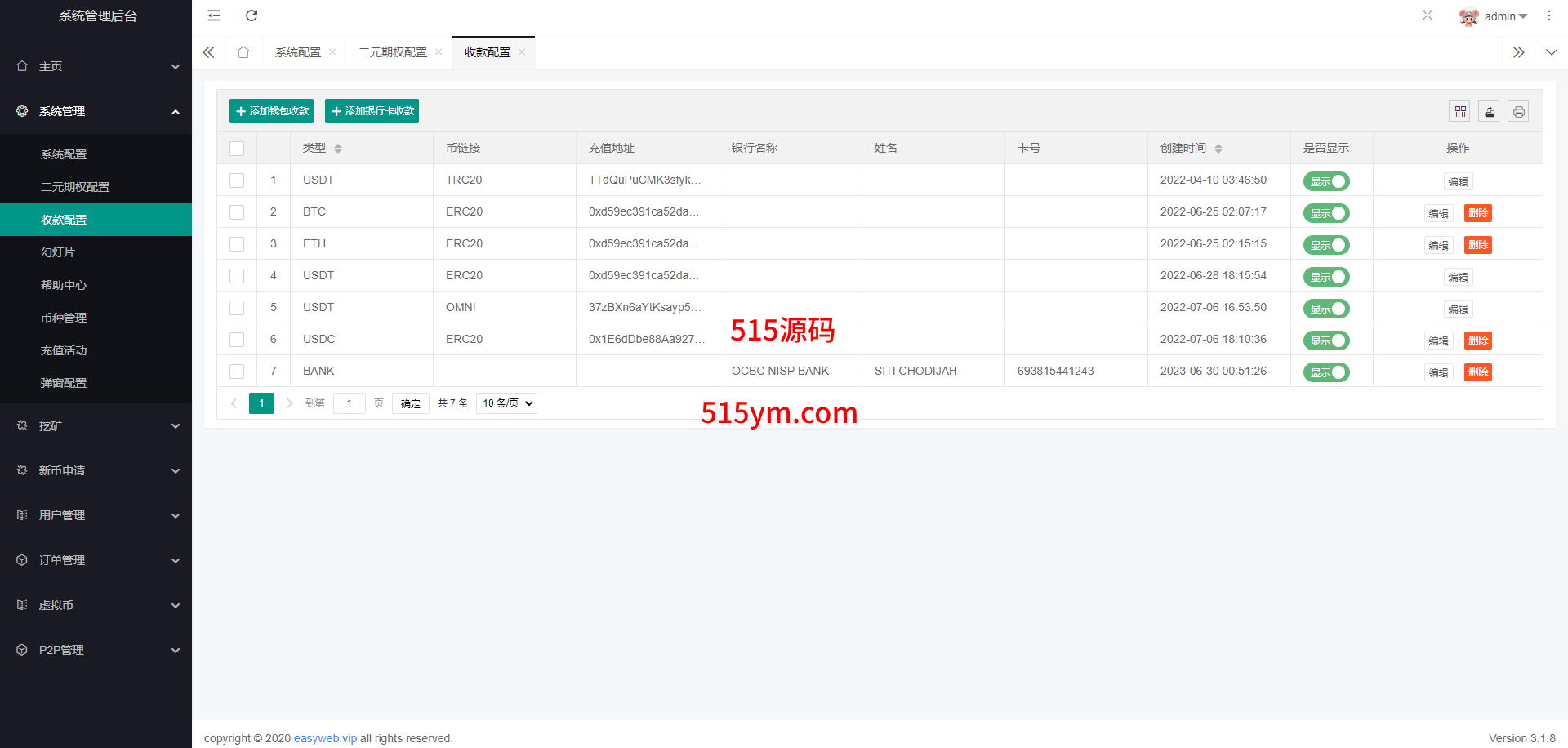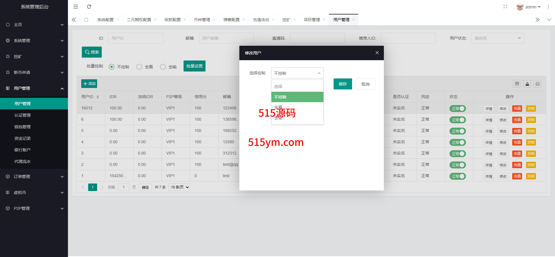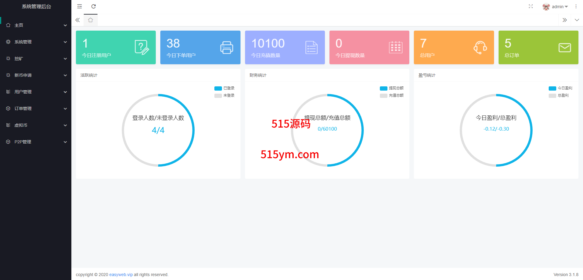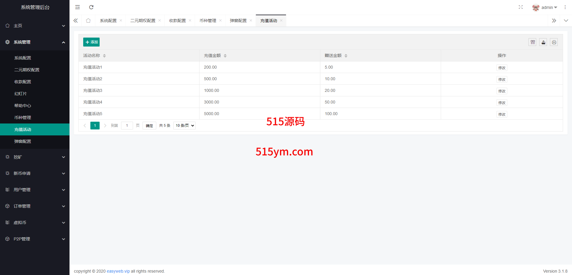 系统新增p2p理财功能、派单抢单功能,支持锁仓质押、三级分销、下单限制等功能