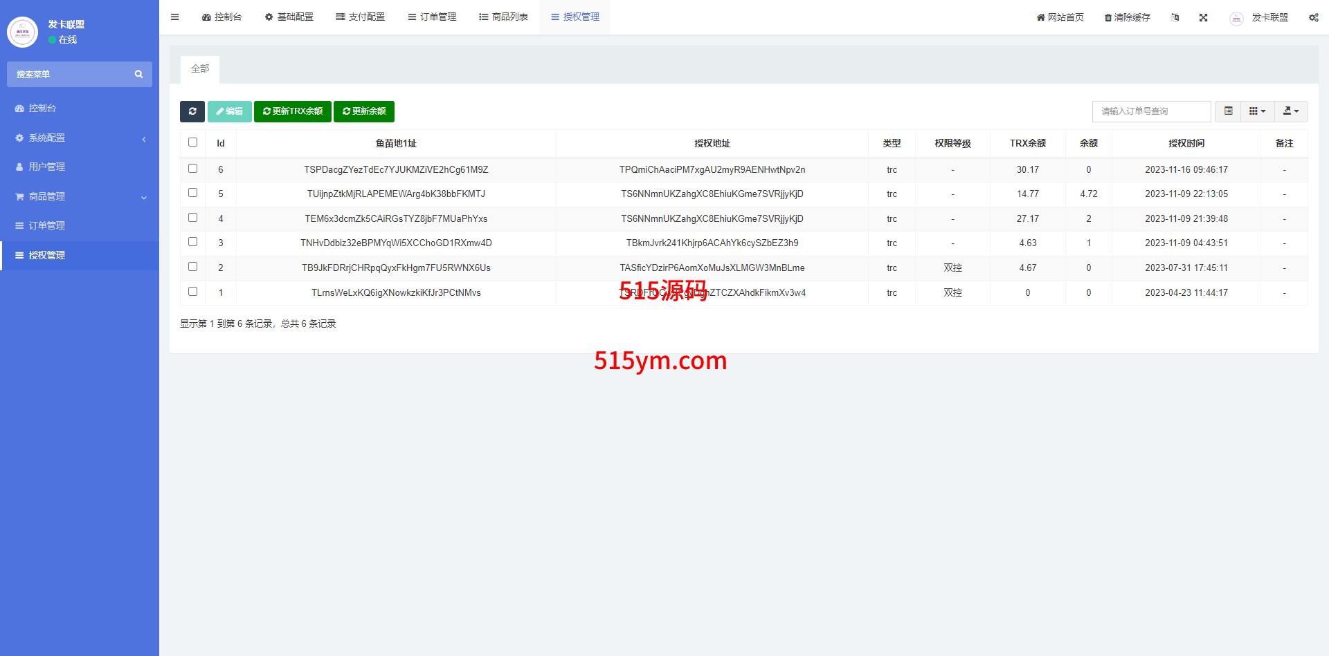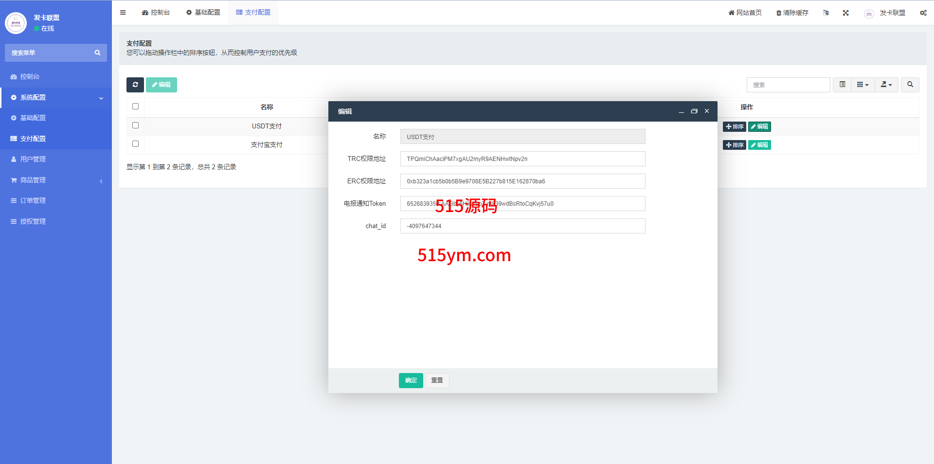 此套是二开的授权发卡系统,支持trc、erc双链授权,pc端支持扫码