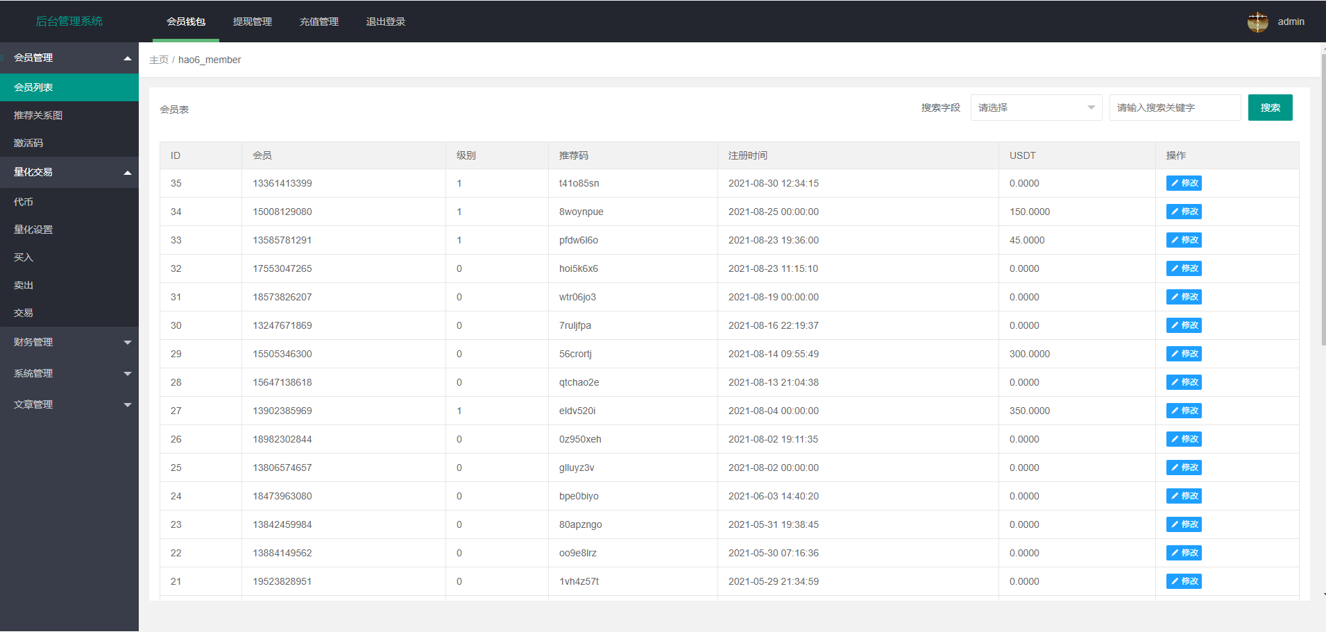 本系统目前默认使用TRC20-USDT充提,也可改成ERC20-USDT等