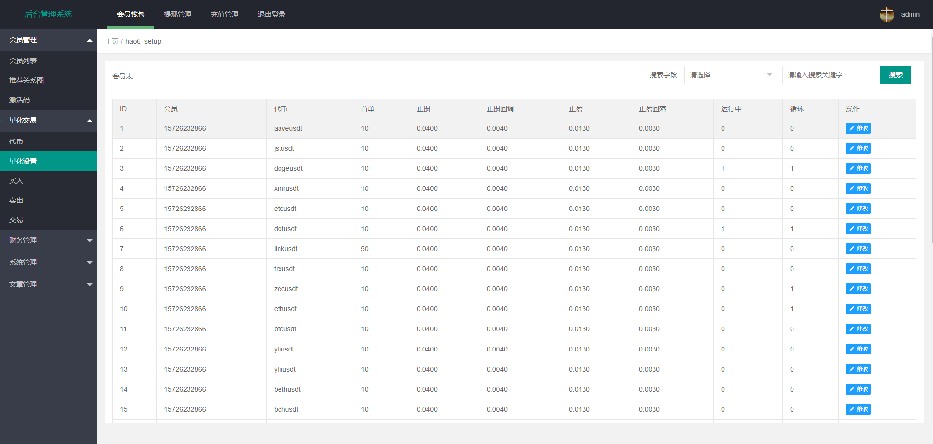 已开启币数:28种币(后台可无限设置),因为服务器配置低当时开了43种币的时候好像有点卡