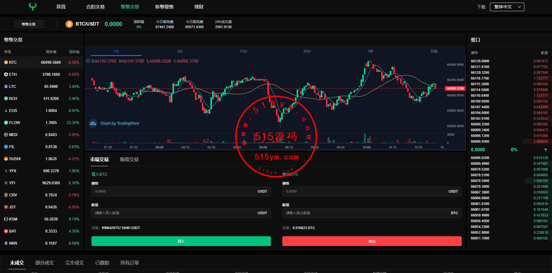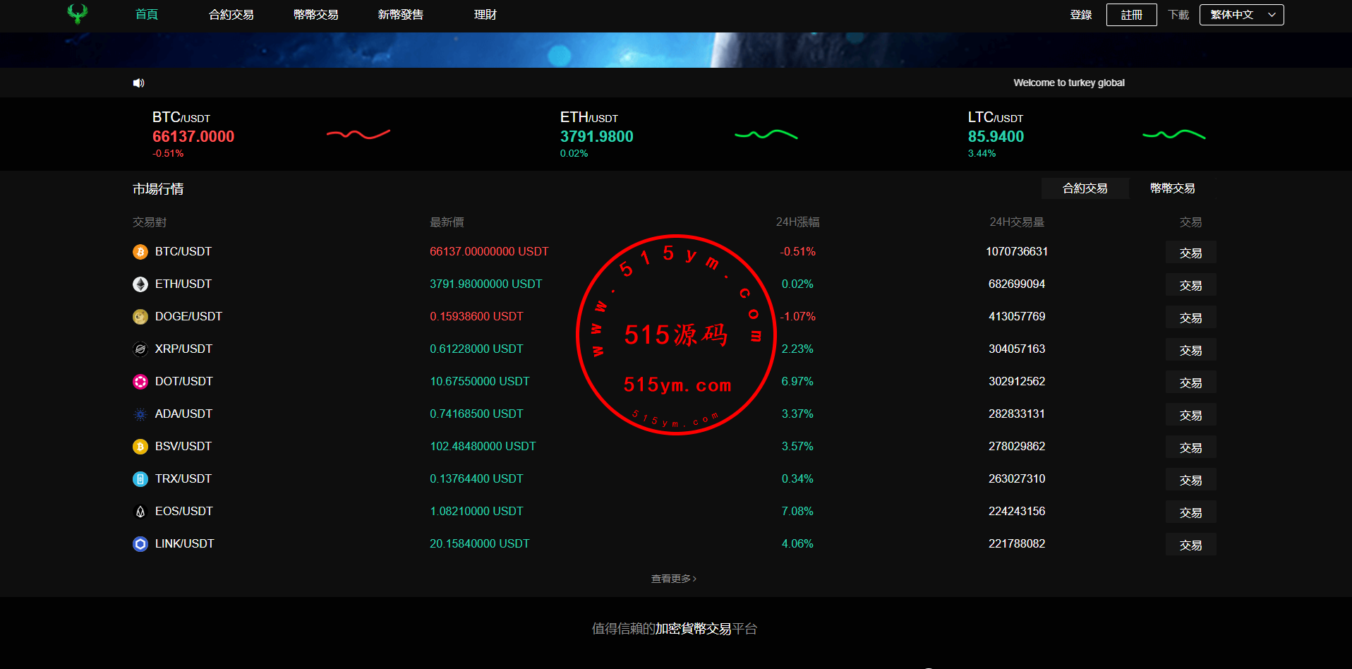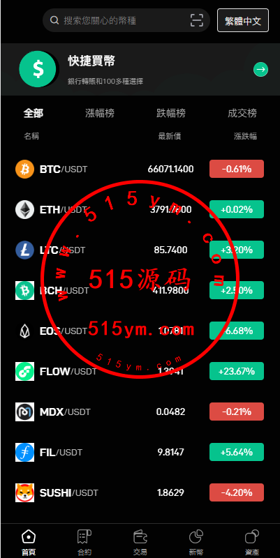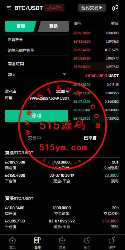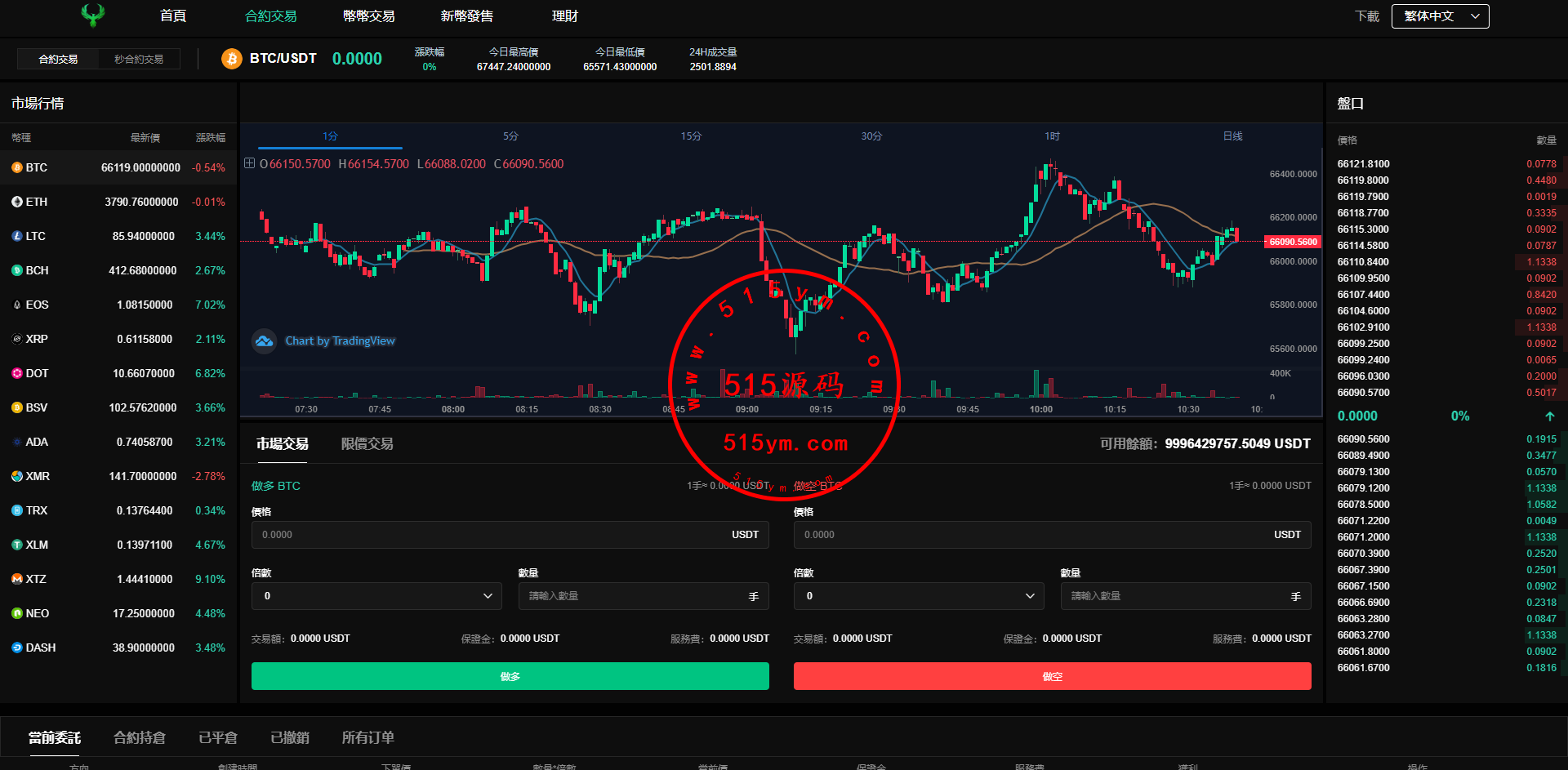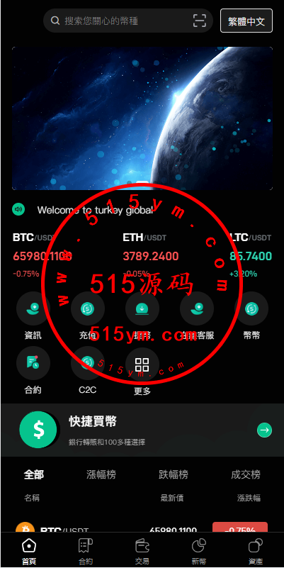 系统功能很全了,ui也不错功能支持:币币交易、合约交易、秒合约交易、c2c、认购、理财等