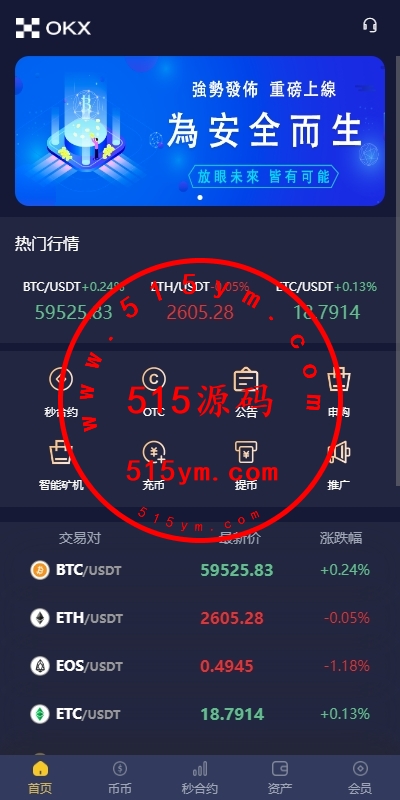 新版UI仿OKX多语言交易所,手机uniapp开发,后端跟代理后台laravel框架