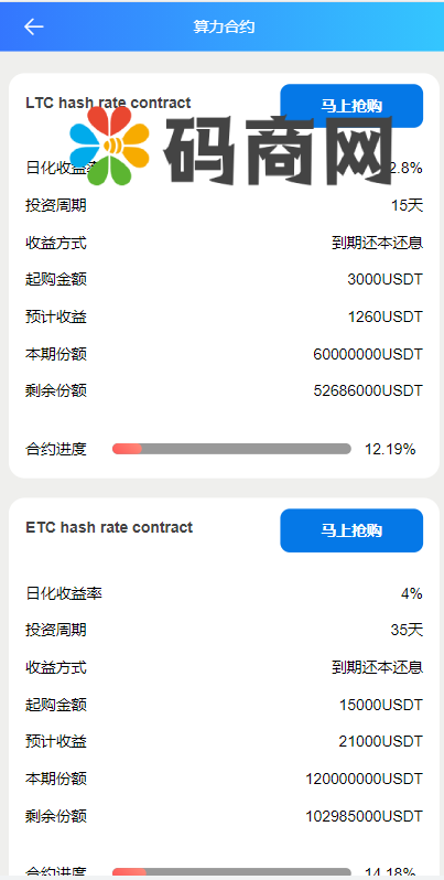 全新二开BTC矿机/算力合约/多语言云矿机区块链系统