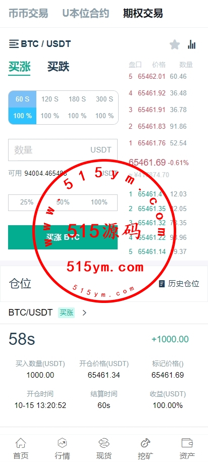 系统功能:币币交易、U本位合约、期权交易、挖矿、兑换等功能