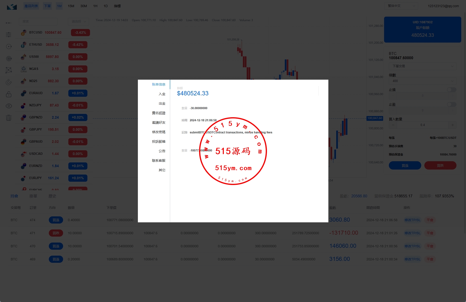 系统是fx7二开的新增PC端,手机端新增理财功能去除秒合约