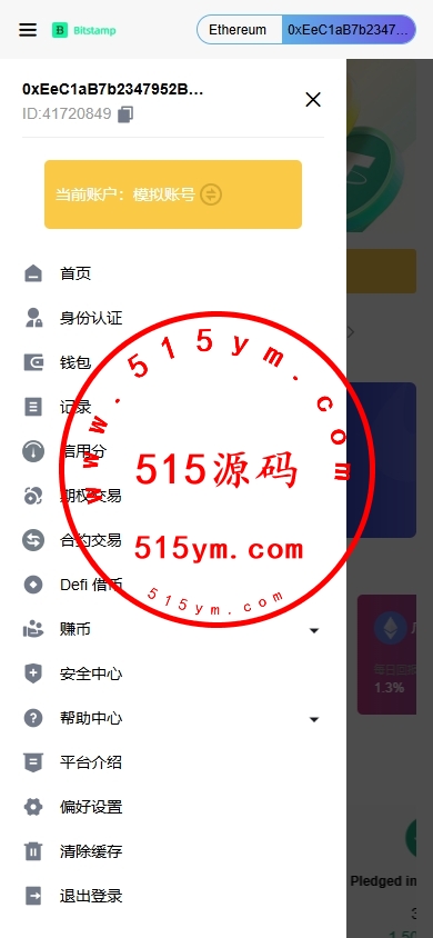 前端账户分为真实账户跟模拟账户(每月可领虚拟资产)