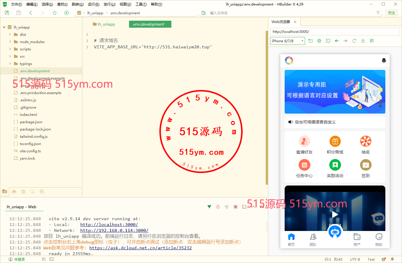 编程语言:前端UNIAPP、后端VUE、代理端VUE、服务端thinkPHP6,四端分离。