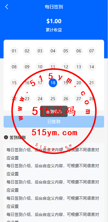 23、每日签到,用户每日可通过签到获得积分和奖励