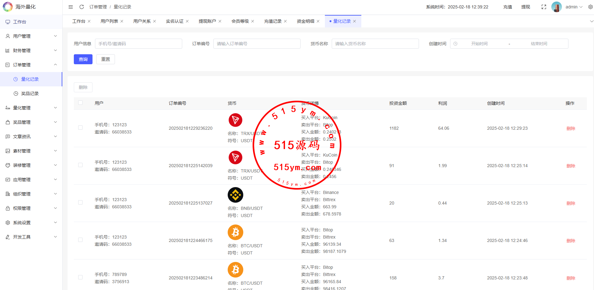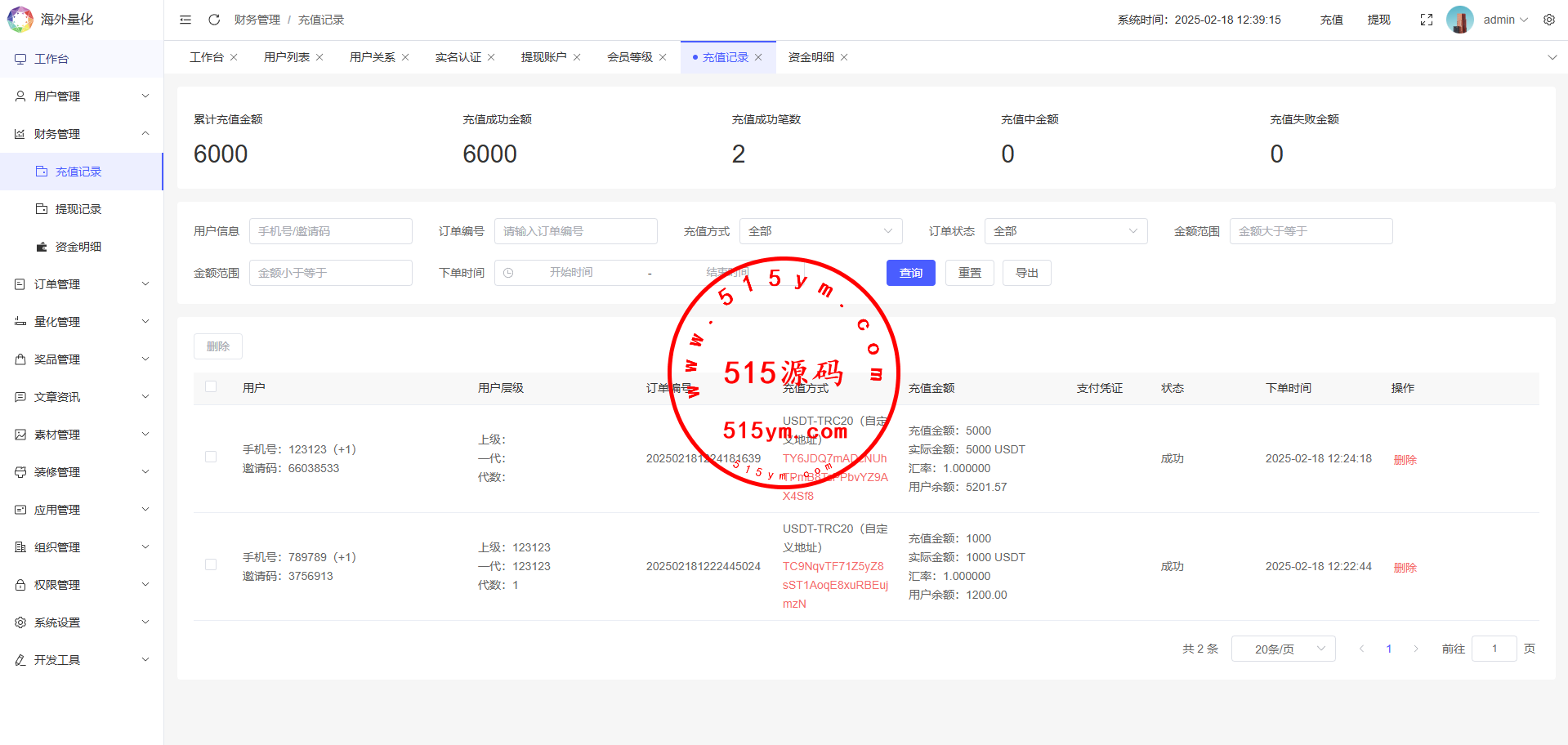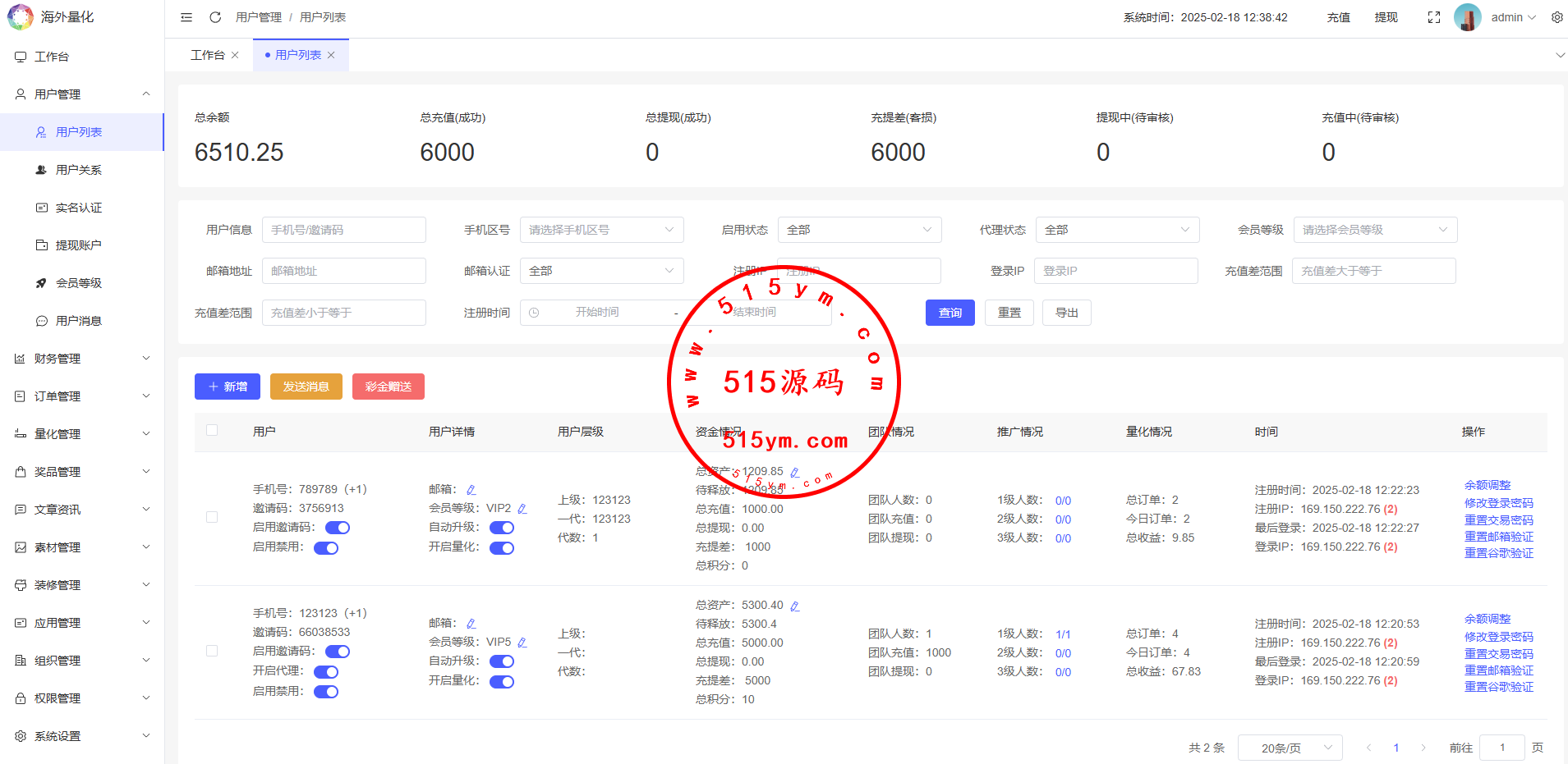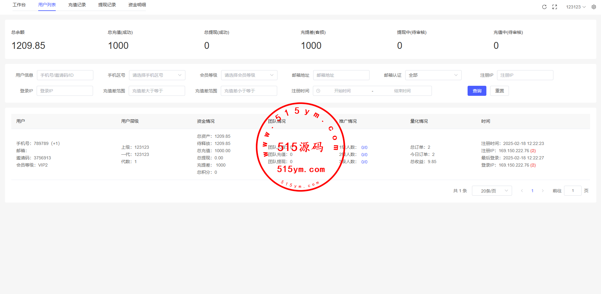 19、代理线功能,后端开启用户为代理,即可登录代理端查看代理下级用户情况