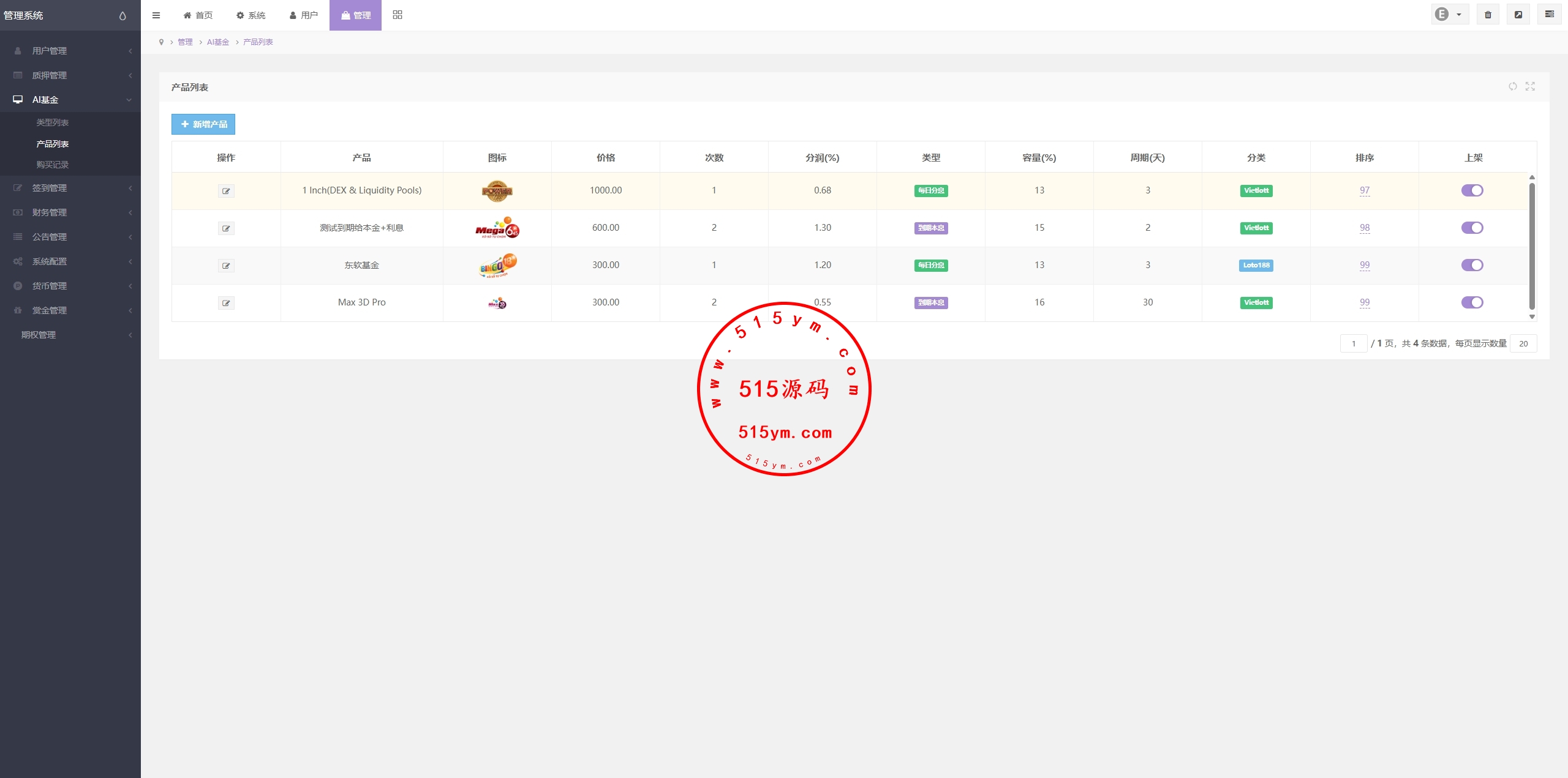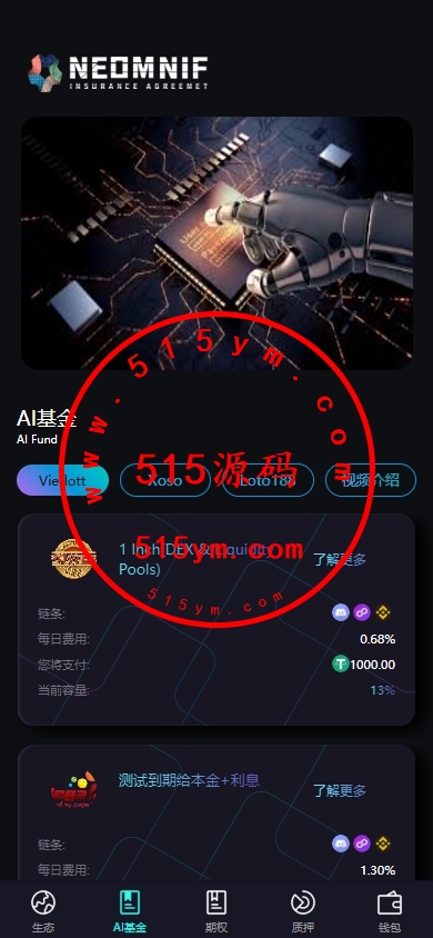 提供多种AI基金项目选择(如 Yieldott、Xoso、Loto188 等)